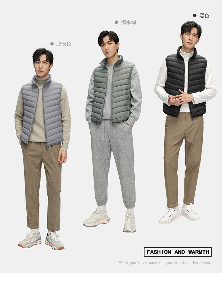 材质很舒服 轻薄但是保暖性很好 穿着版型好看,穿在外套里面不会鼓鼓囊囊的,很满意的一次购物。而且这个含绒量很高,大品牌值得信赖