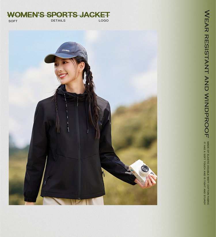 骆驼 【轻量舒适】运动外套女梭织防风衣女春秋连帽风衣户外夹克外套