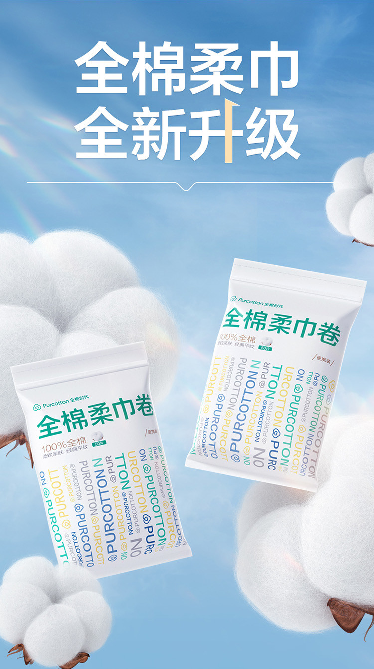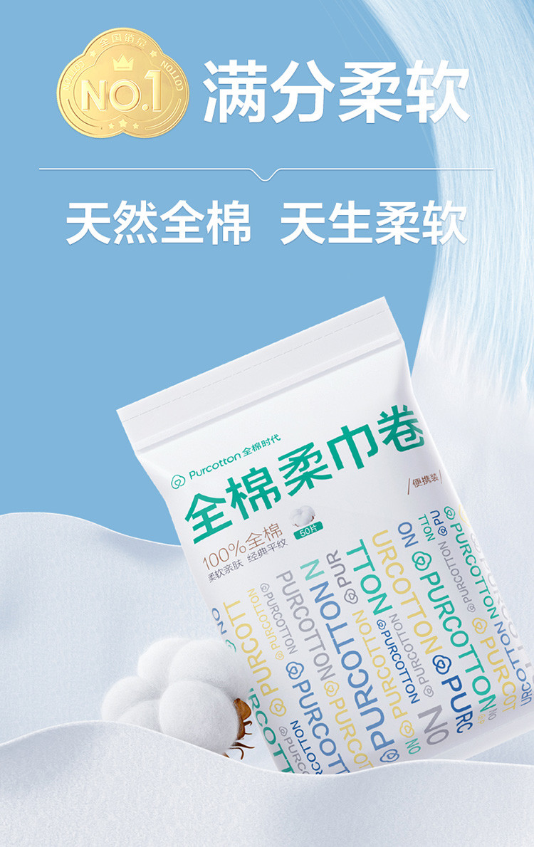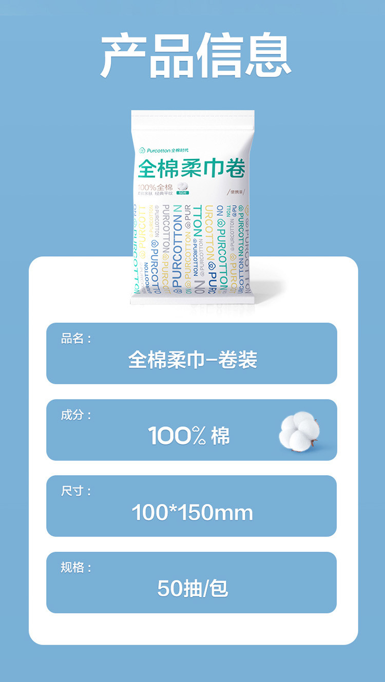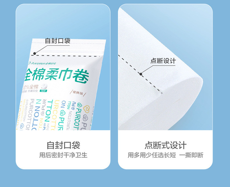 全棉时代 【新升级】便携装全棉柔巾卷断点式一次性洗脸巾差旅酒店用品