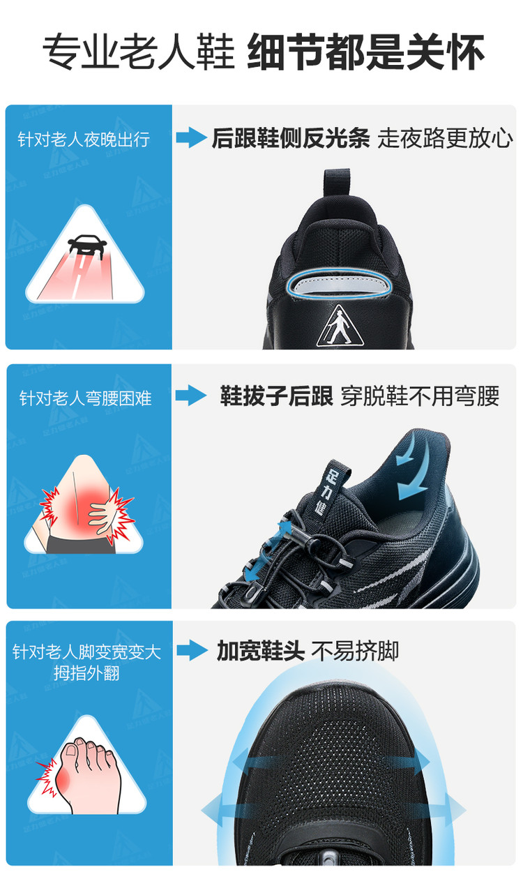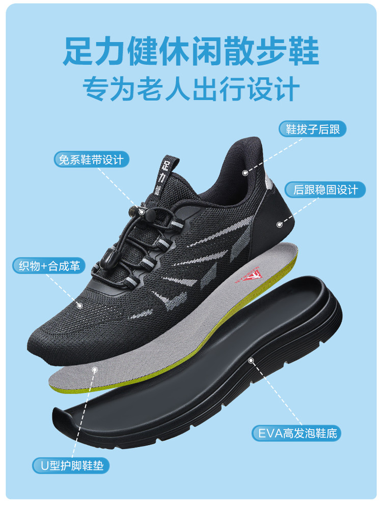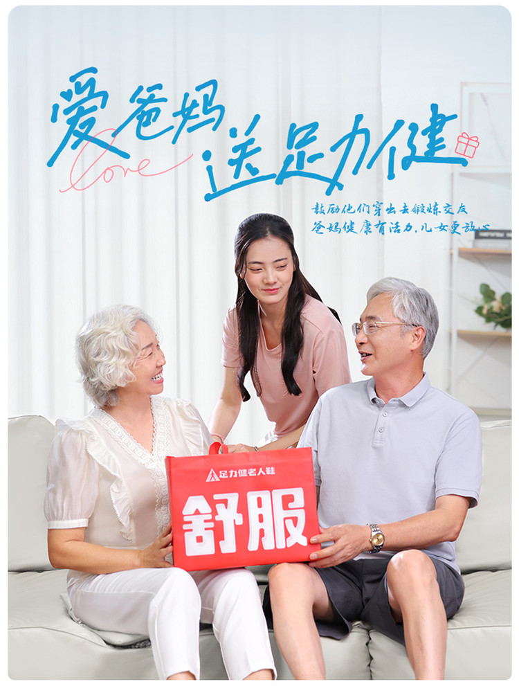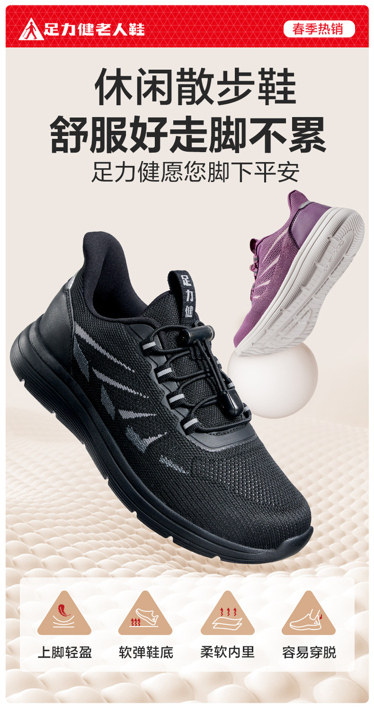 足力健 爸妈礼物【超软】春季百搭中老年男女士一脚蹬四季休闲运动健步鞋