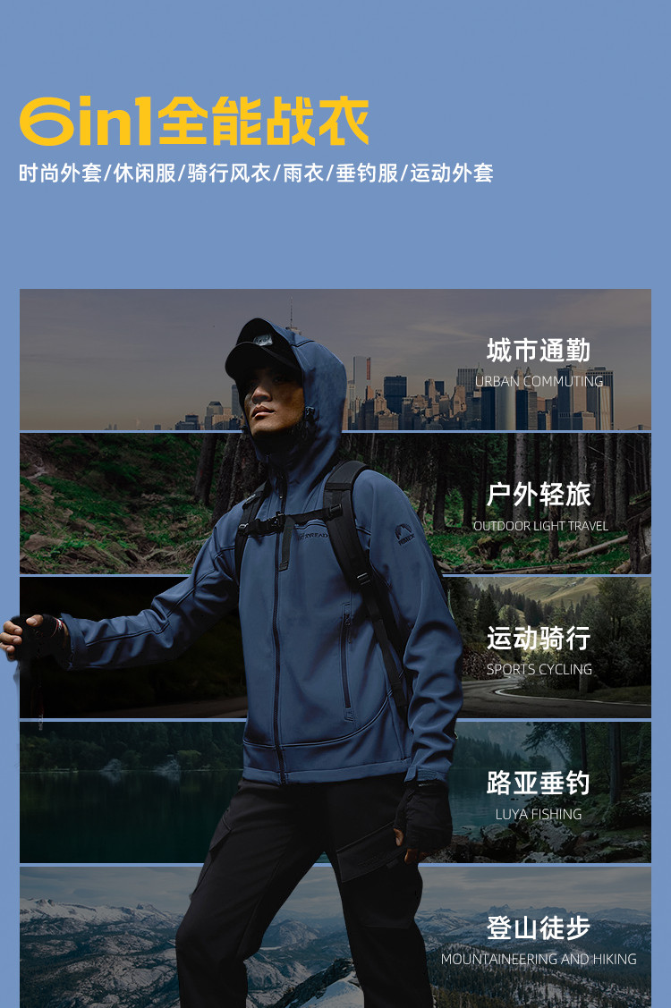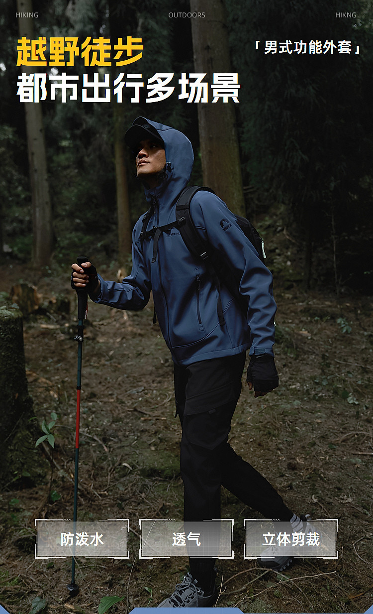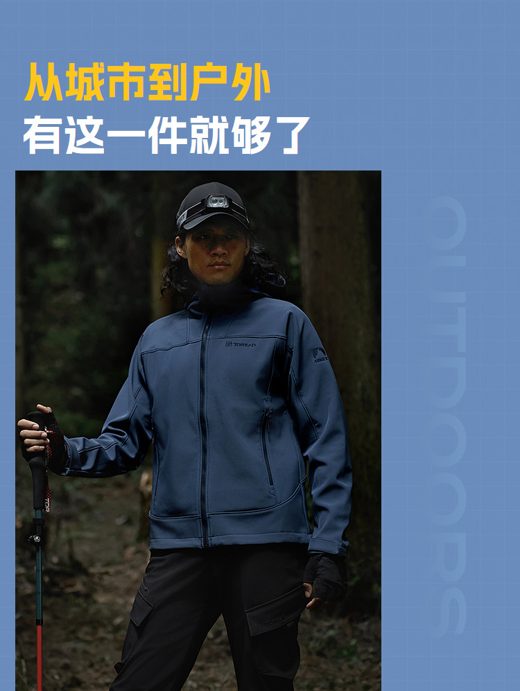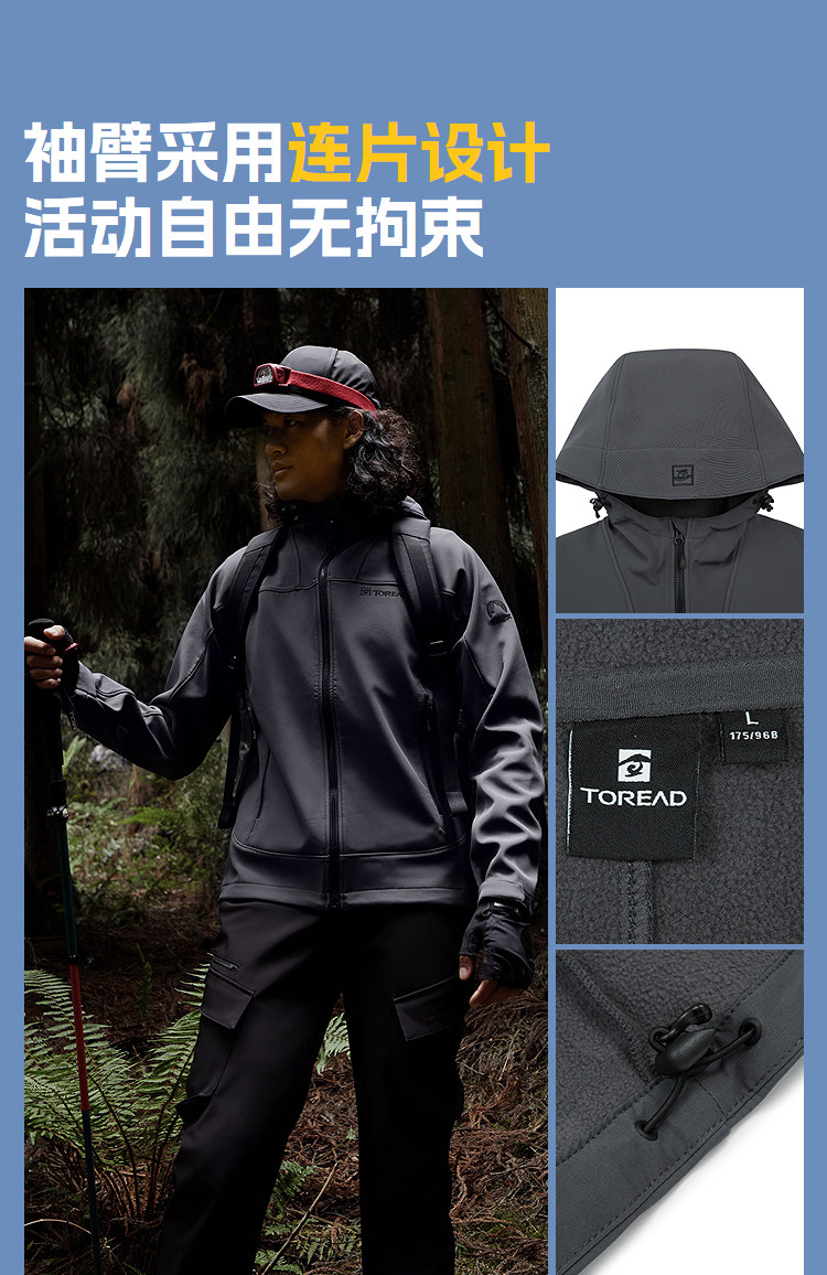 探路者 【户外功能外套】探路者户外防风保暖登山夹克男式软壳徒步外套