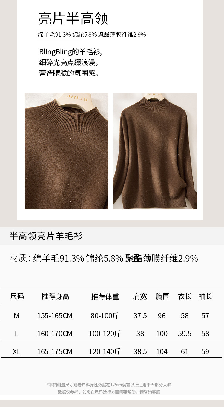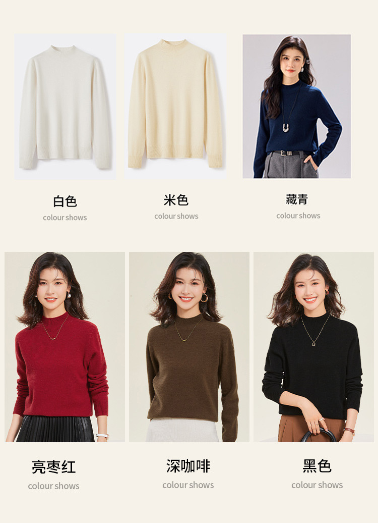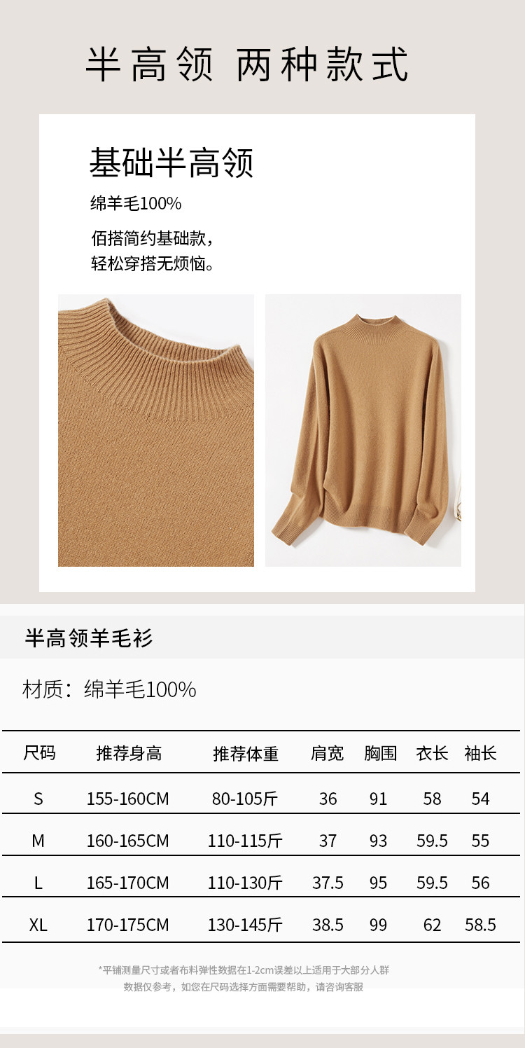 金菊 【种草价秋冬热卖爆款】一线成衣厚款简约气质半高领女式羊毛衫