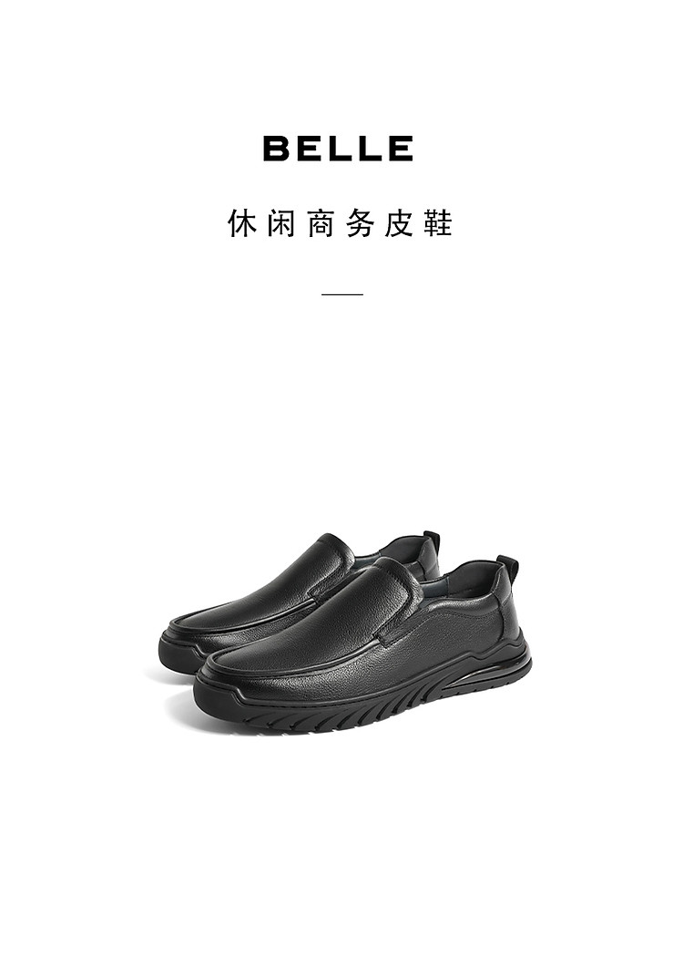 BELLE 【品质爆款】百丽男鞋轻便舒适真皮商务鞋秋牛皮革套脚休闲皮鞋