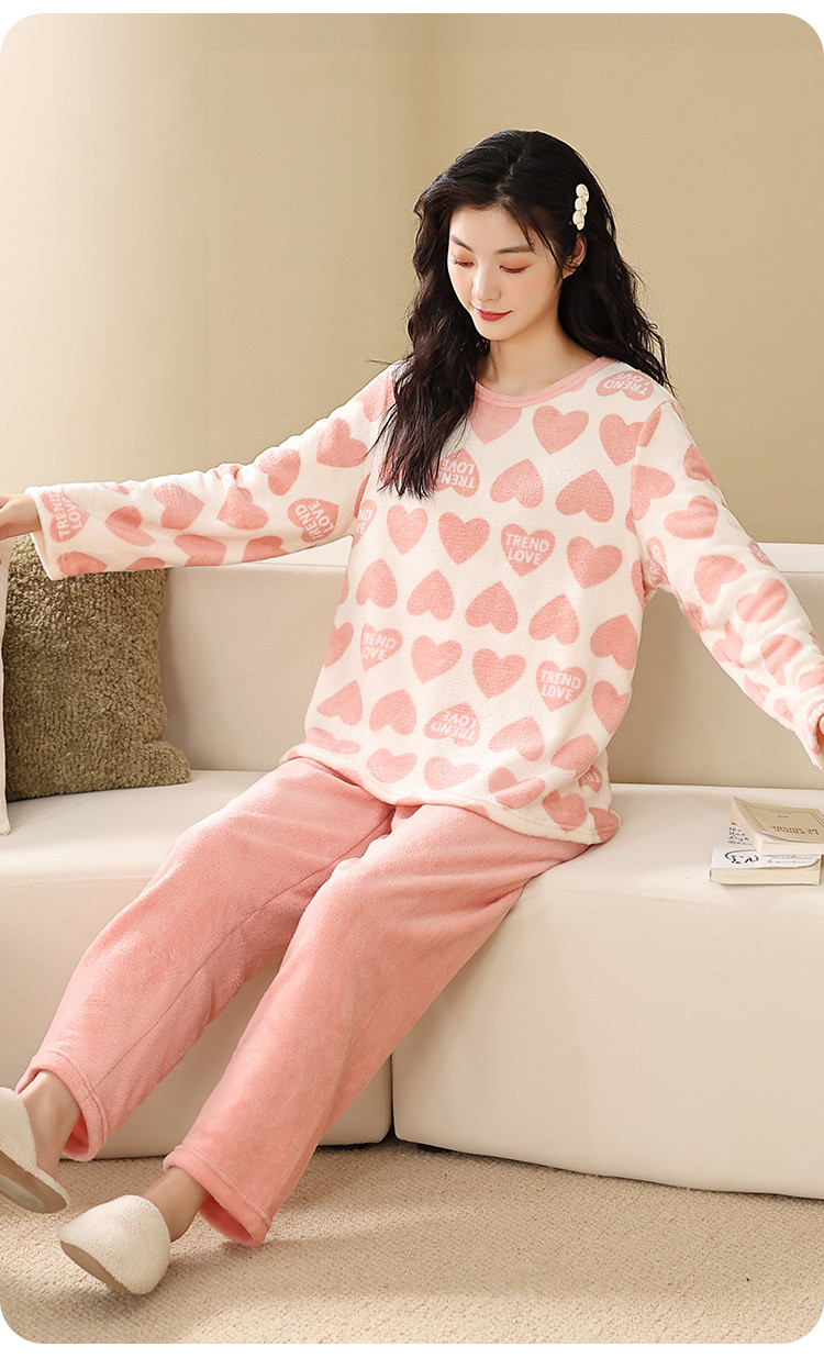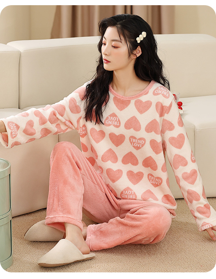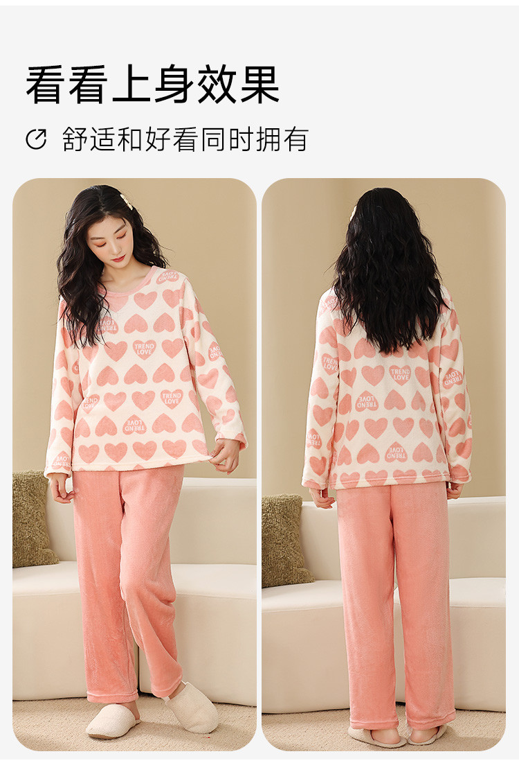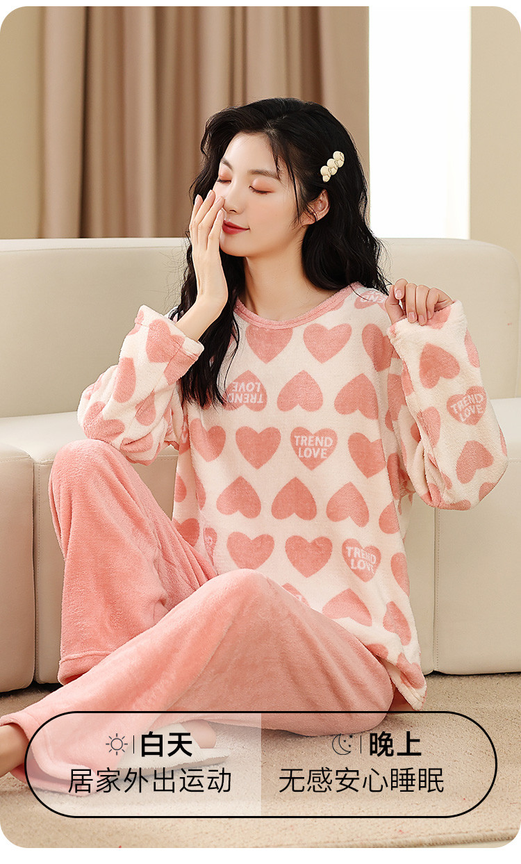 GOSO 【亲肤暖绒】秋冬保暖法兰绒睡衣女长袖可外穿女士家居服女套装