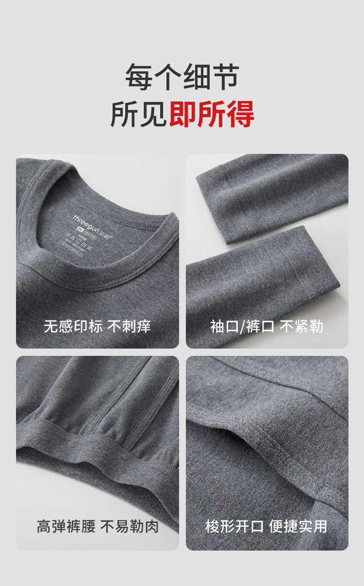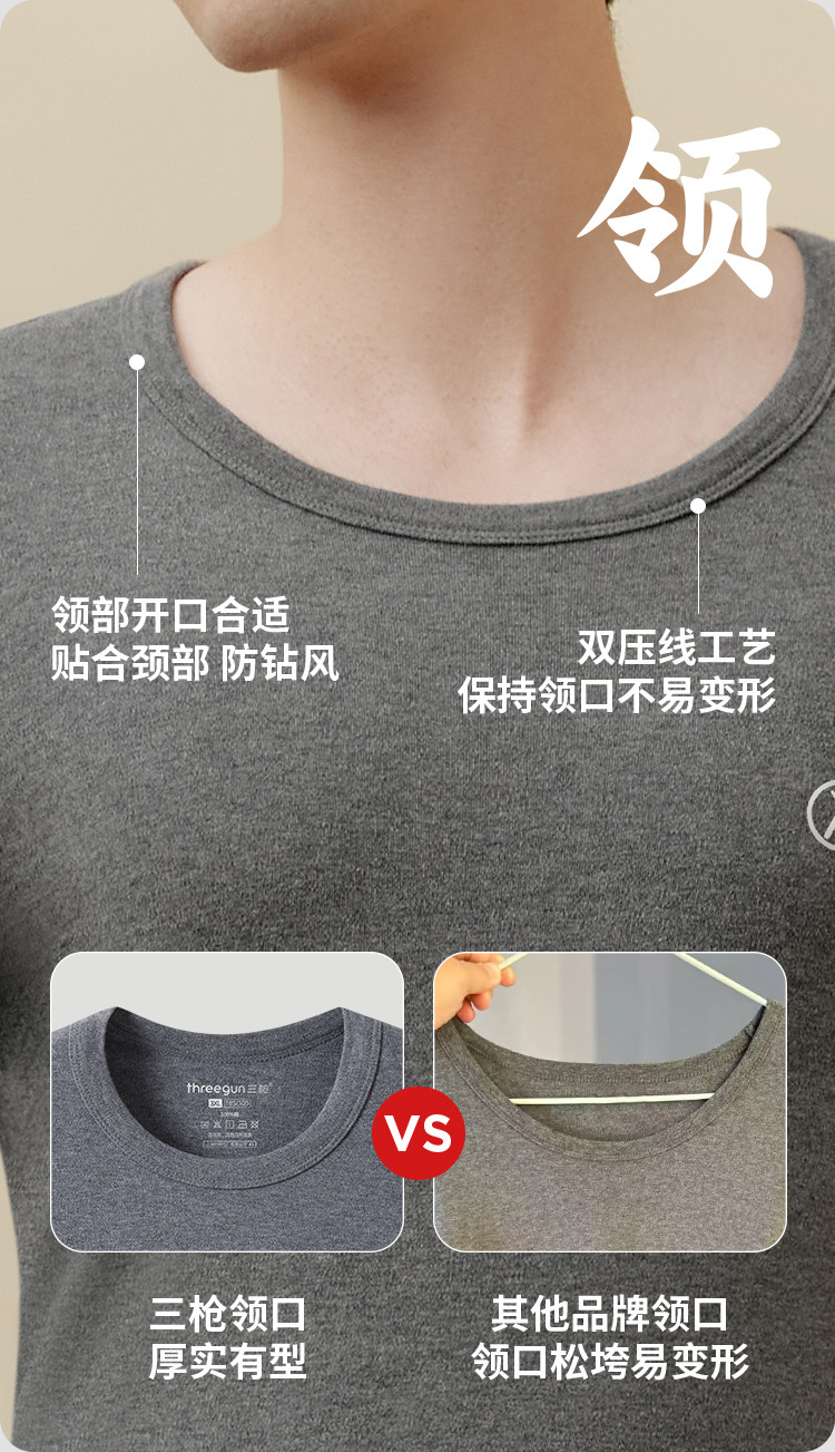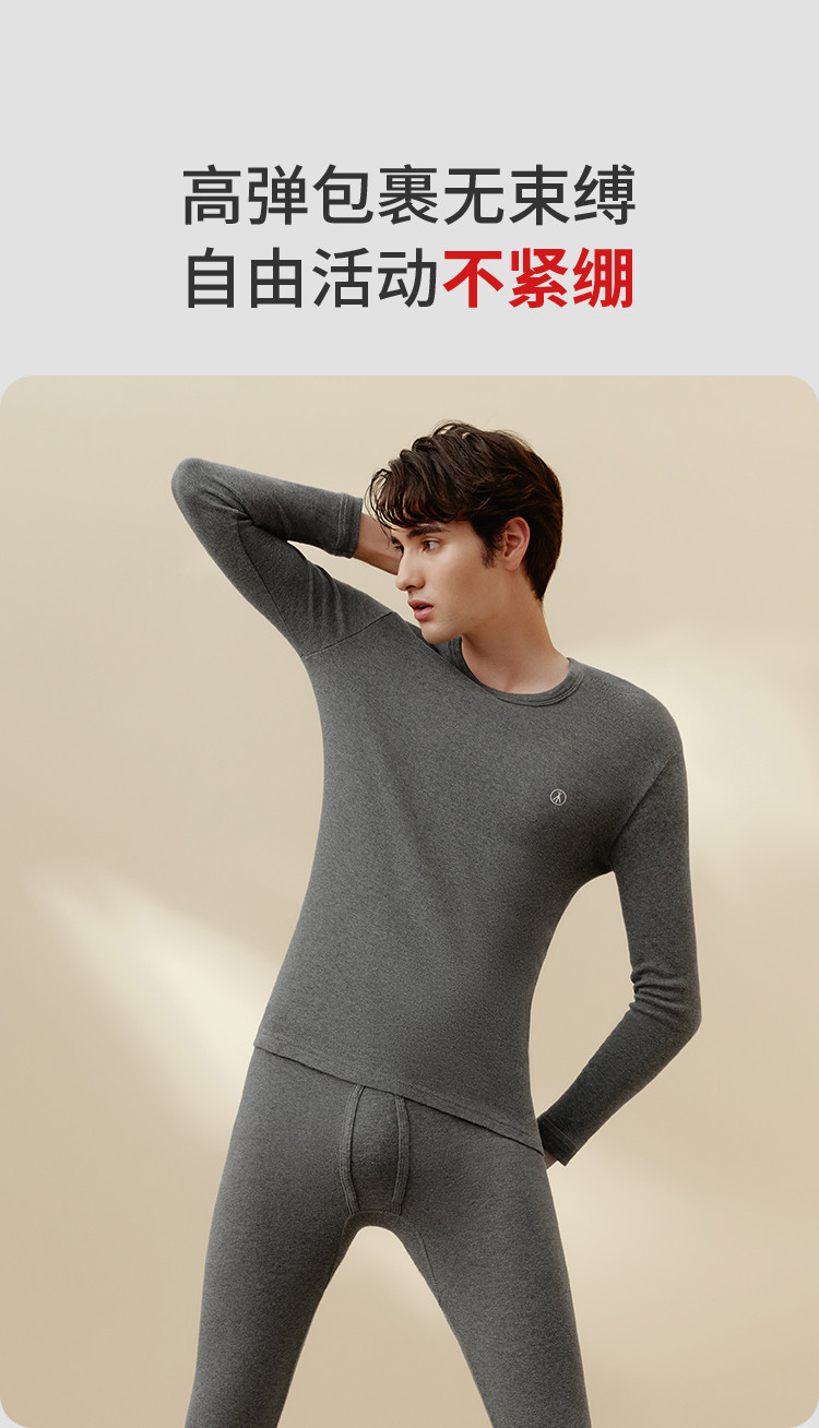 三枪 【100%纯棉厚棉】231克高弹防静电秋衣秋裤男保暖内衣套装