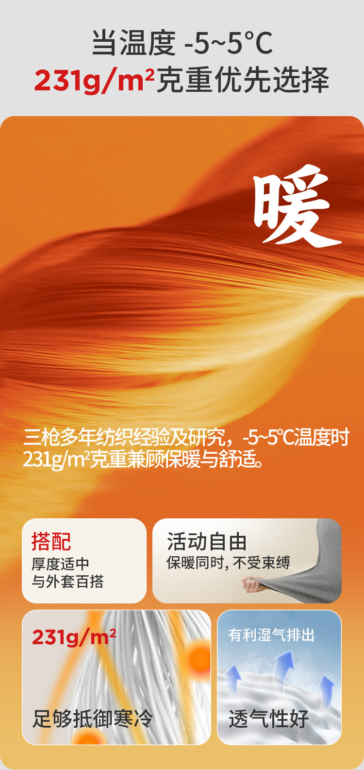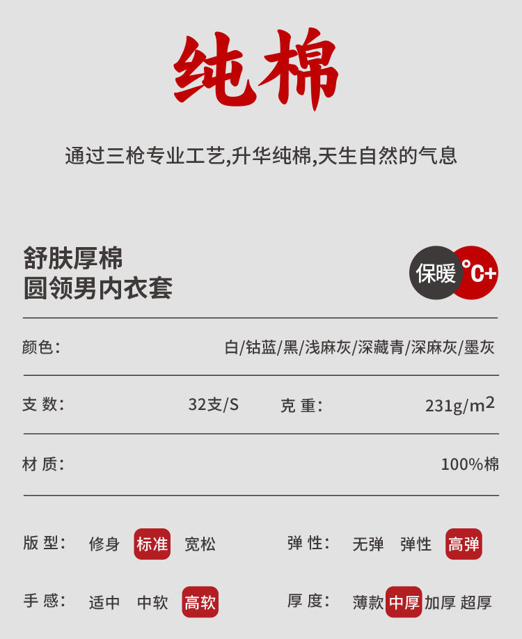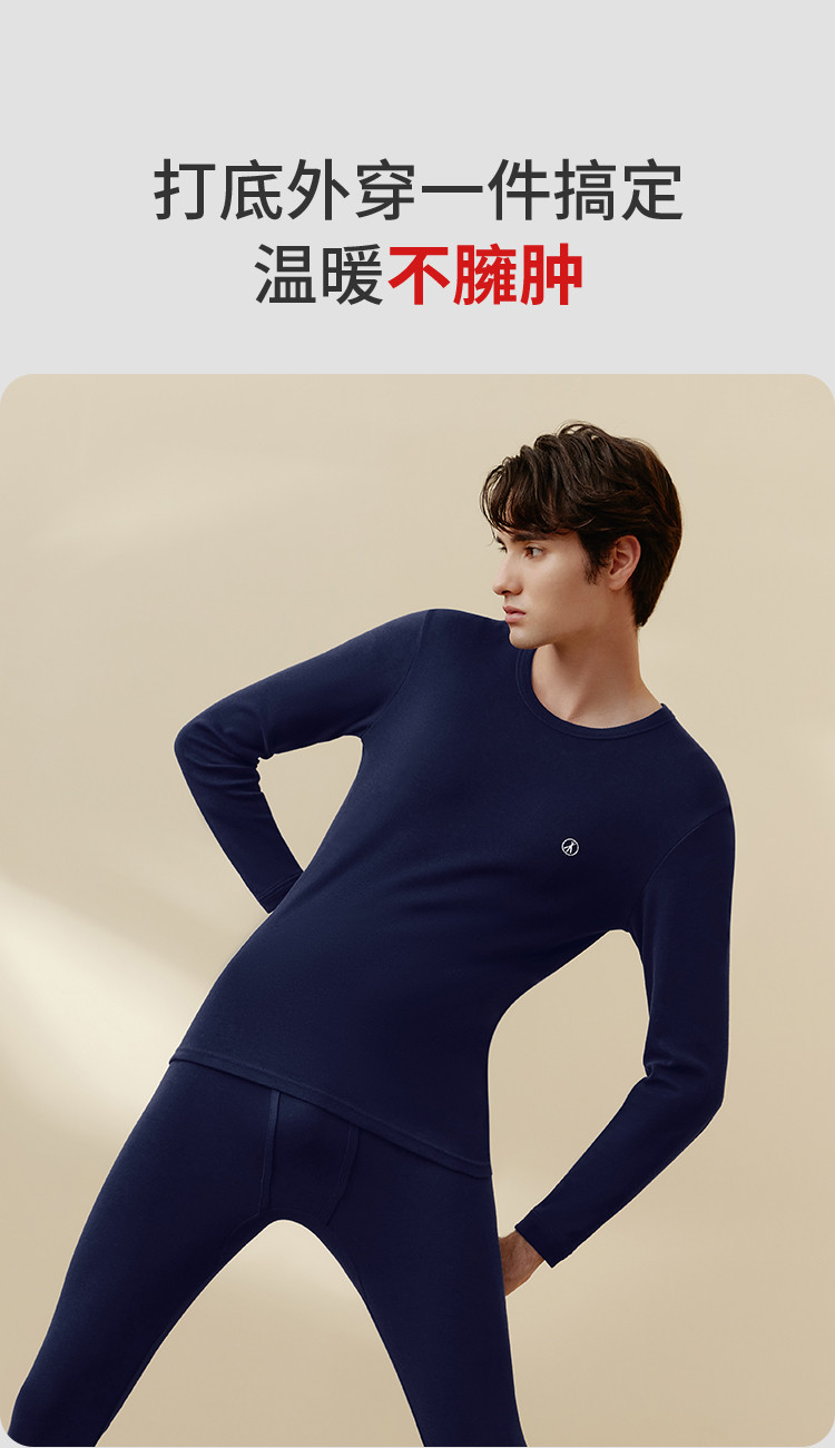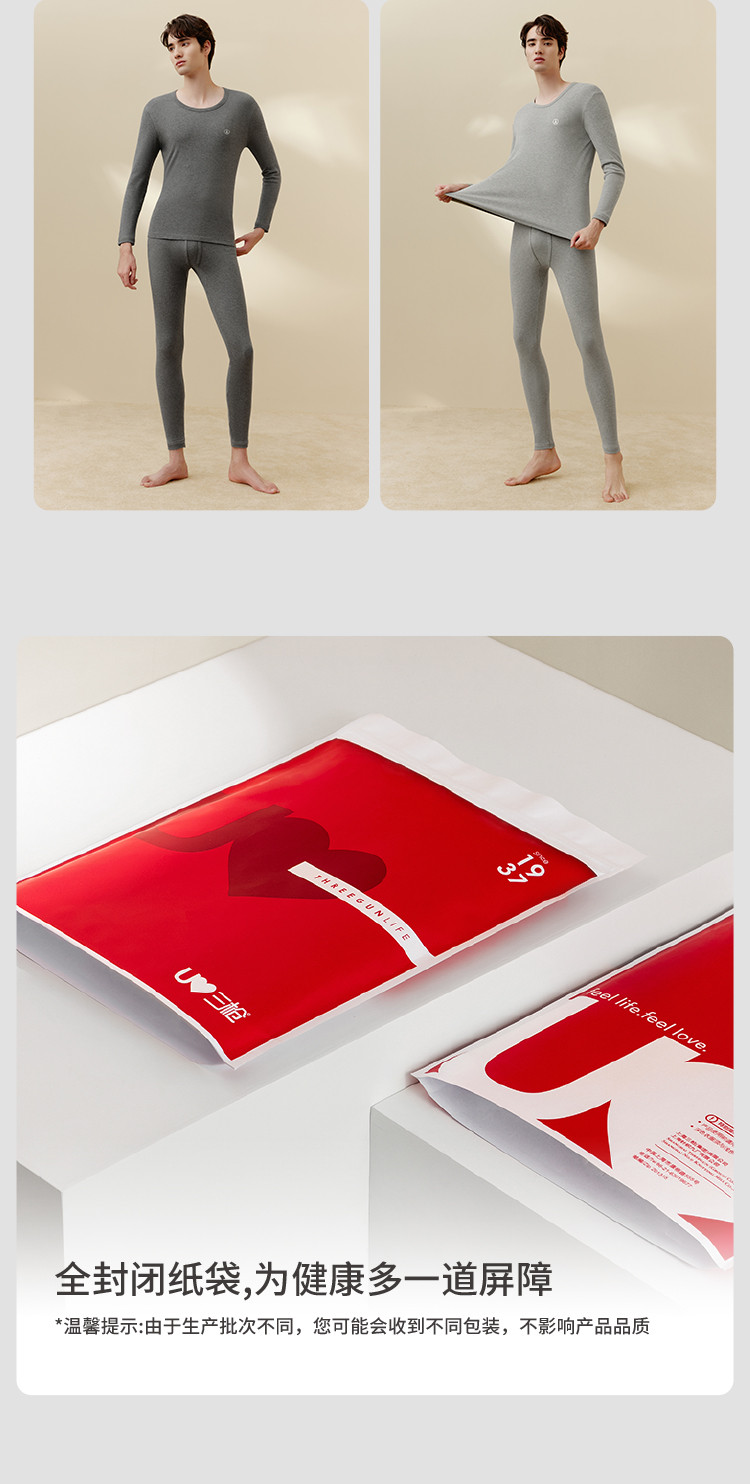 三枪 【100%纯棉厚棉】231克高弹防静电秋衣秋裤男保暖内衣套装
