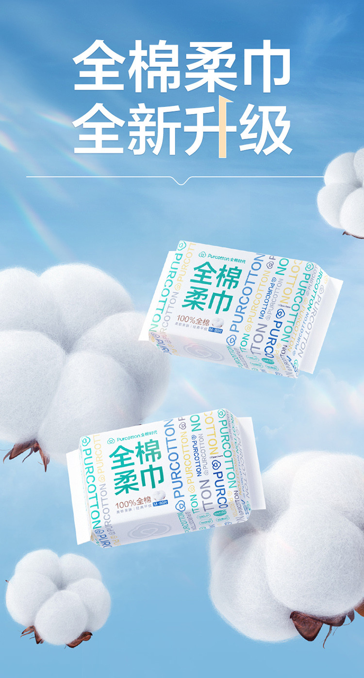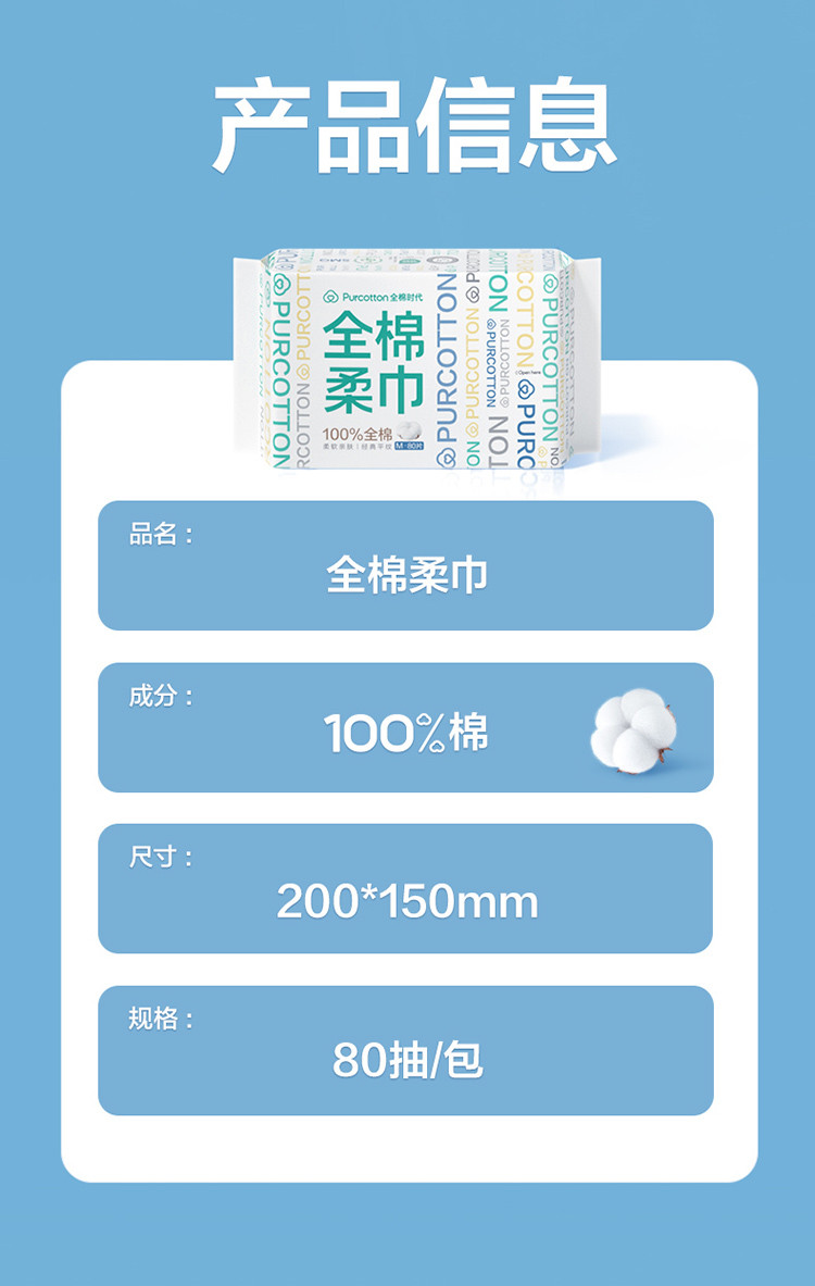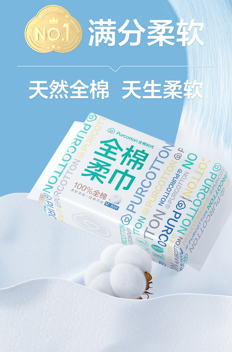 全棉时代 【经典M码80抽】100%纯棉柔巾一次性洗脸巾洁面巾干湿两用