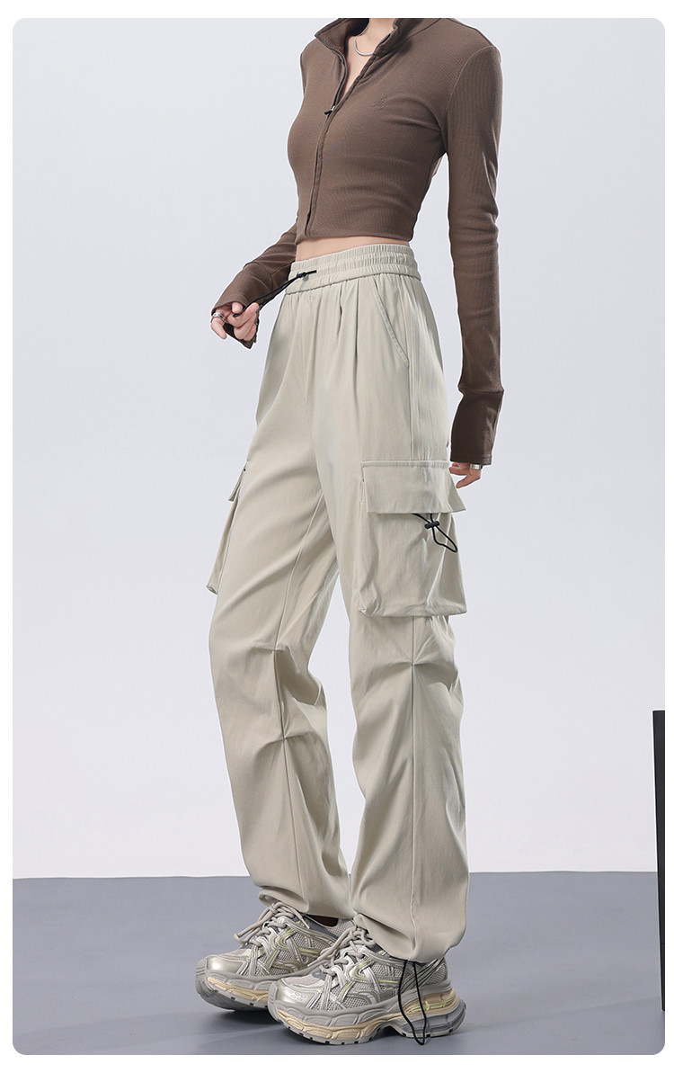 町缇 【两种厚度】美式窄版工装裤秋冬加绒抽绳两穿束脚登山运动裤子女