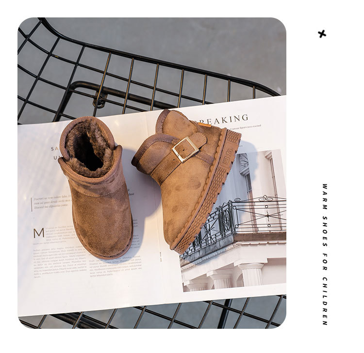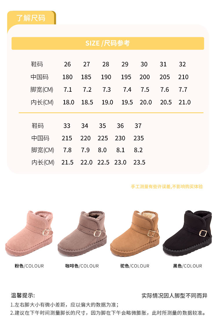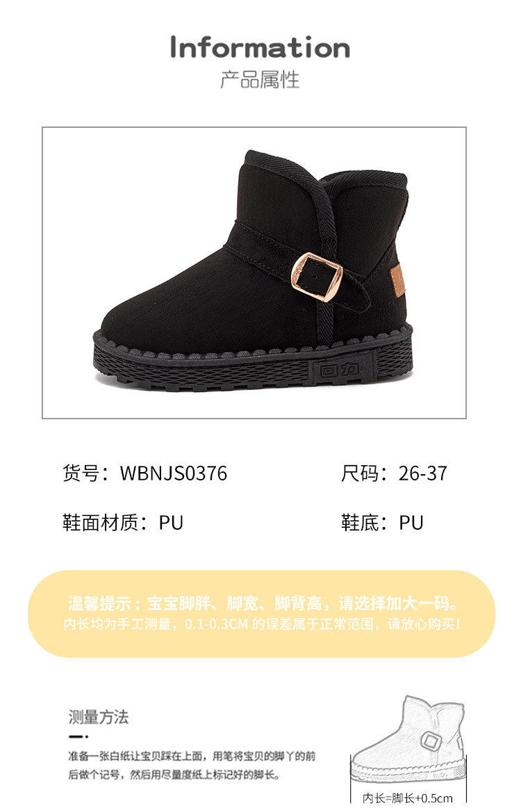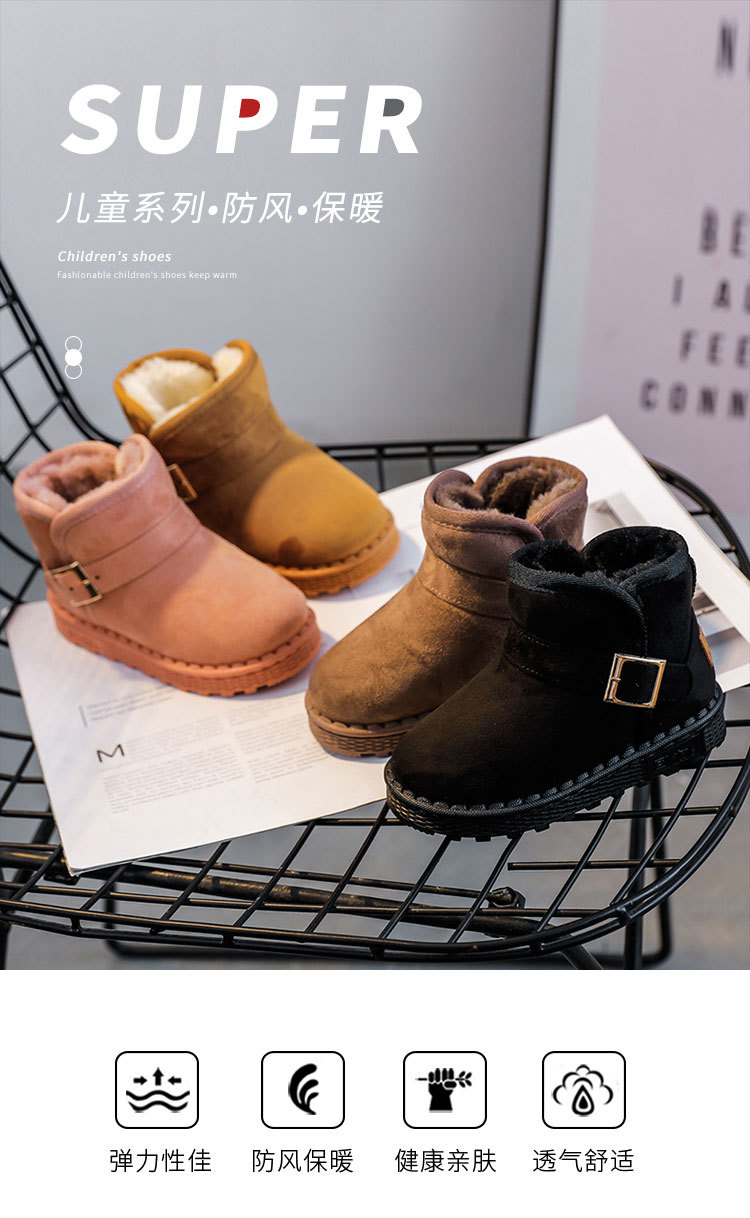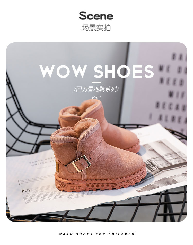 回力 冬季爆款童鞋儿童加绒保暖雪地靴男女童长绒棉鞋大小童短靴