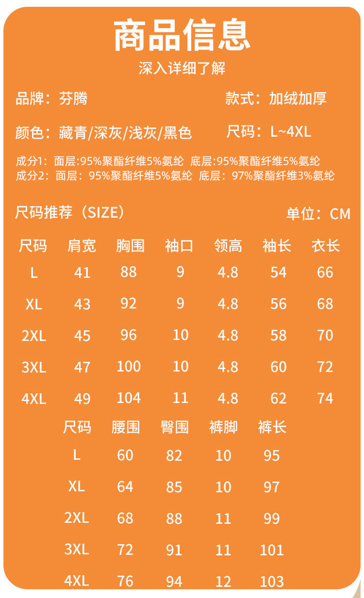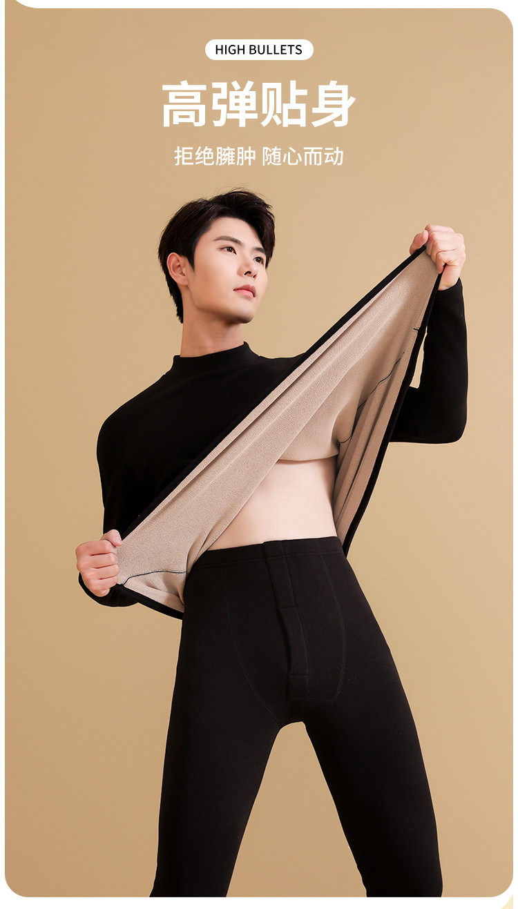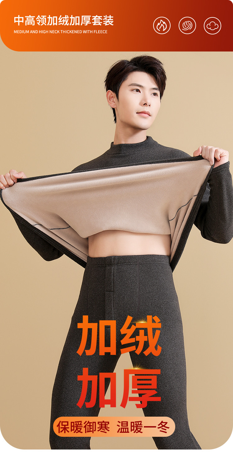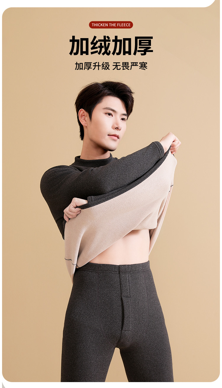 芬腾 【加绒加厚 中领防风】居家打底男女保暖内衣秋衣秋裤套装男秋冬