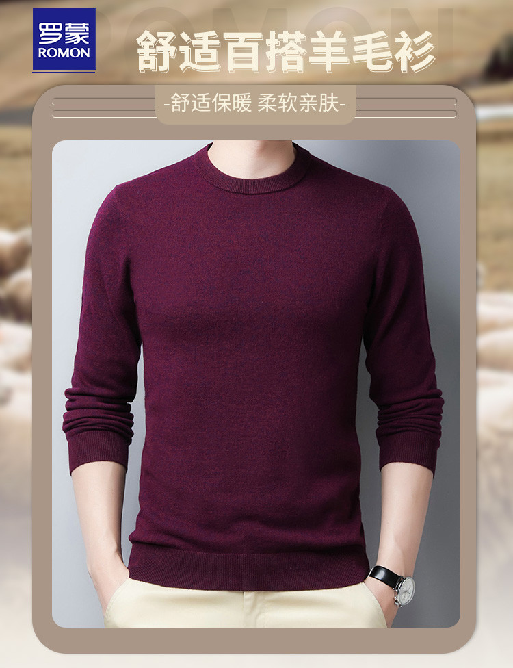 罗蒙 【口碑推荐】羊毛衫男100%羊毛半高领毛衣男半高领男士羊毛衫