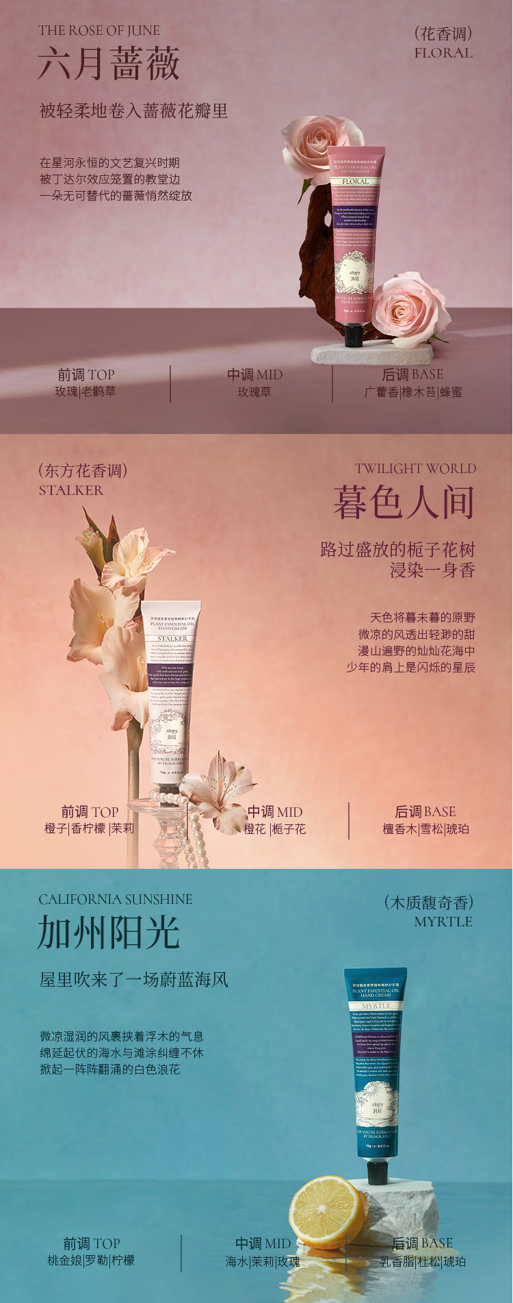 roopy檀香百合护手霜太戳我了!包装是复古文艺的调调,挤出来质地润而不油,推开秒吸收,手一下子就软嫩了。檀木混着百合的香气很高级,不甜腻还持久,小小一支揣包里随时涂,这波入得太值!