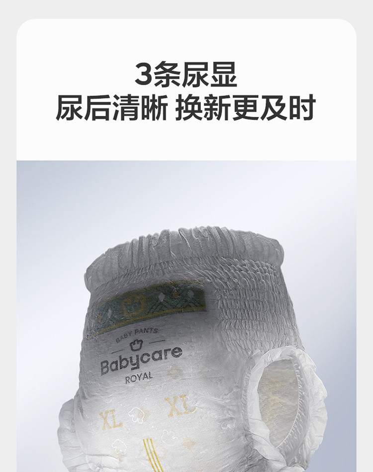 1. 超细纤维面层,像云朵一样柔软亲肤,宝宝穿一整天也不闷不勒。抑菌芯片+海藻精粹,有效防红屁屁,一夜一片超干爽,再也不用半夜起来换尿布了! 2. 不愧是口碑款!定点下渗+双导流设计,吸尿超快还不反渗,小屁屁时刻干爽。人体工学剪裁,加高防漏护围,宝宝怎么翻身、学步都不侧漏,老母亲终于能睡整觉了! 3. 细节控宝妈爱了!包装干净卫生,腰围弹性超大不勒肚,尿显清晰。无荧光剂、无香精,成分安全,敏感肌宝宝也能放心用,无限回购款!