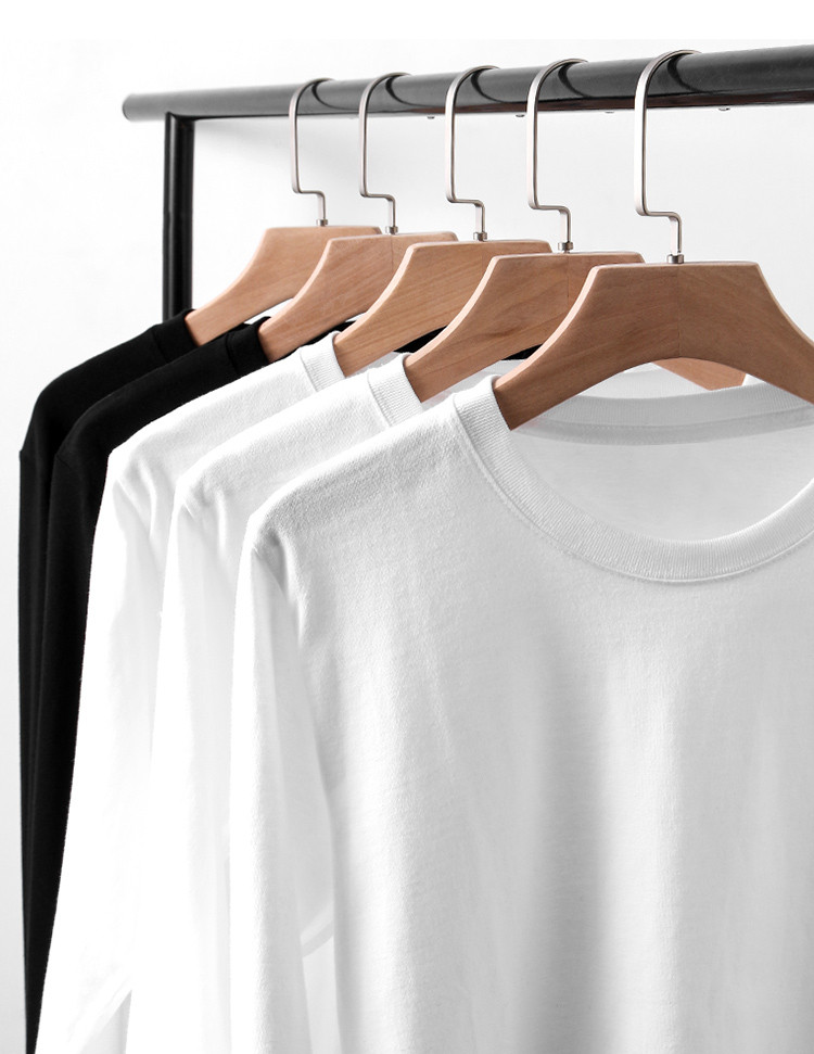 莫代尔 【重磅纯棉】白色长袖t恤打底衫男女春秋季内搭加厚上衣不透