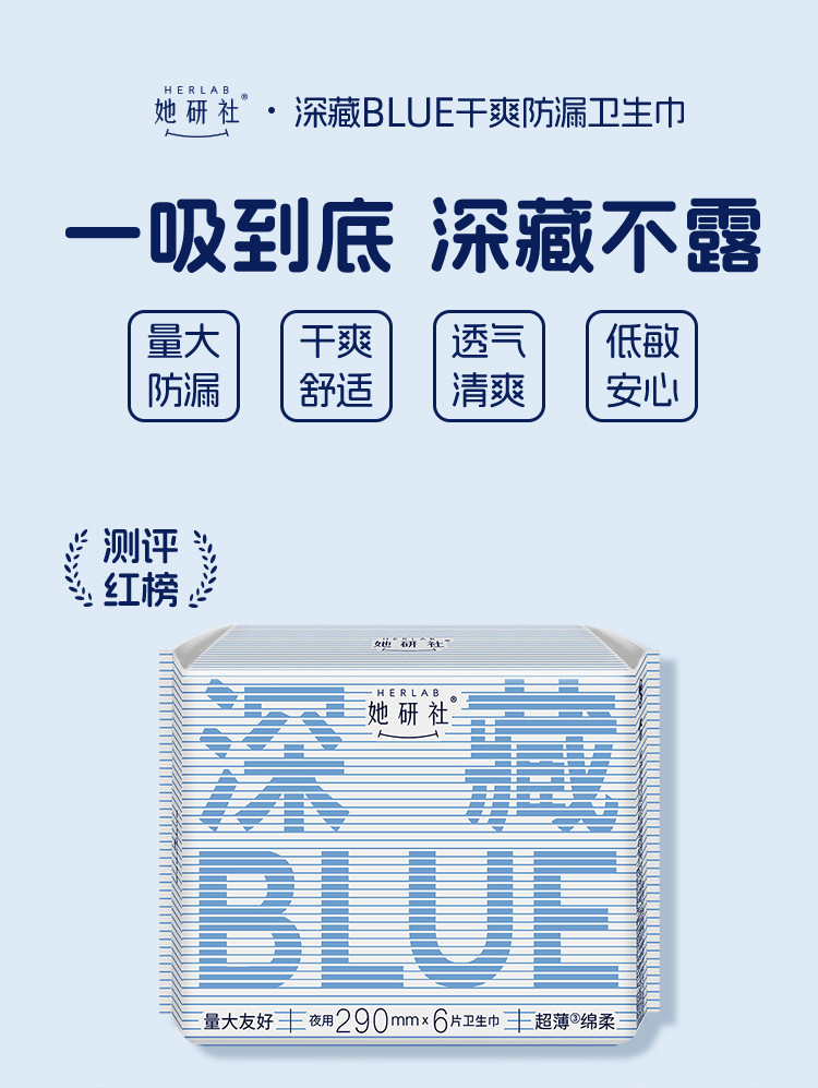 她研社 卫生巾女整箱日夜组合深藏Blue绵柔亲肤姨妈巾8包