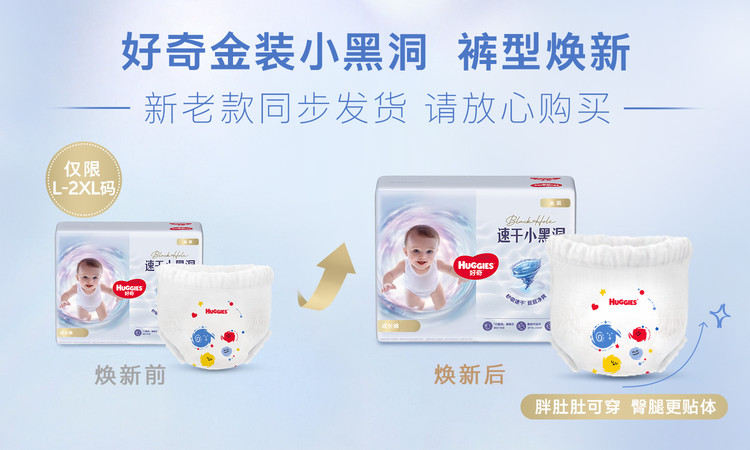 好奇 金装拉拉裤成长裤速干小黑洞L128/XL108/2XL88/3XL68/4XL新老随机