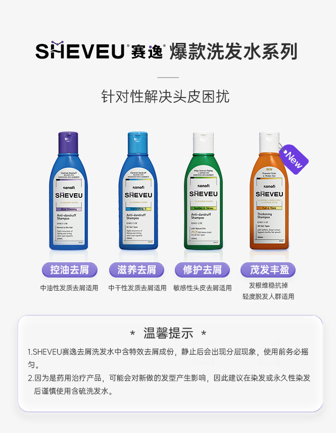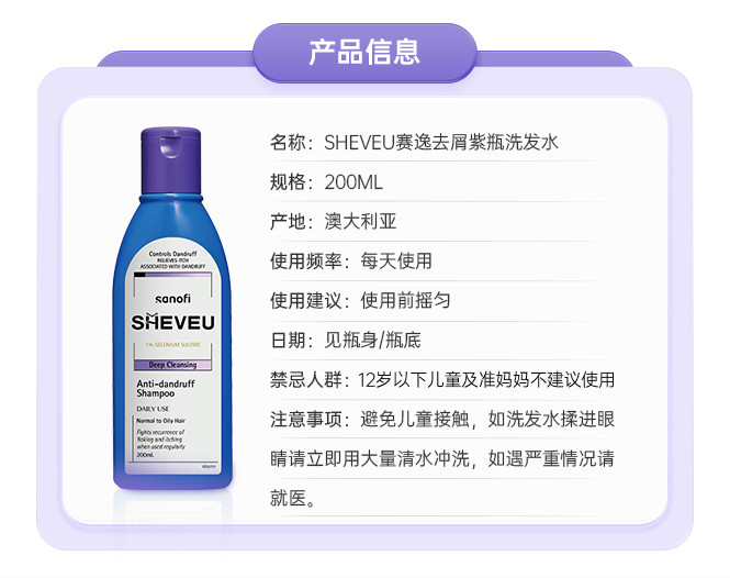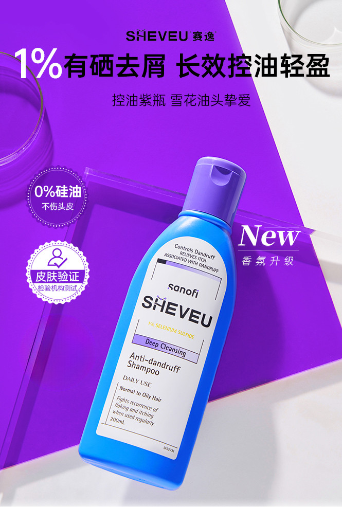 赛逸 二硫化硒控油去屑深层清洁男女洗发水紫瓶200ml