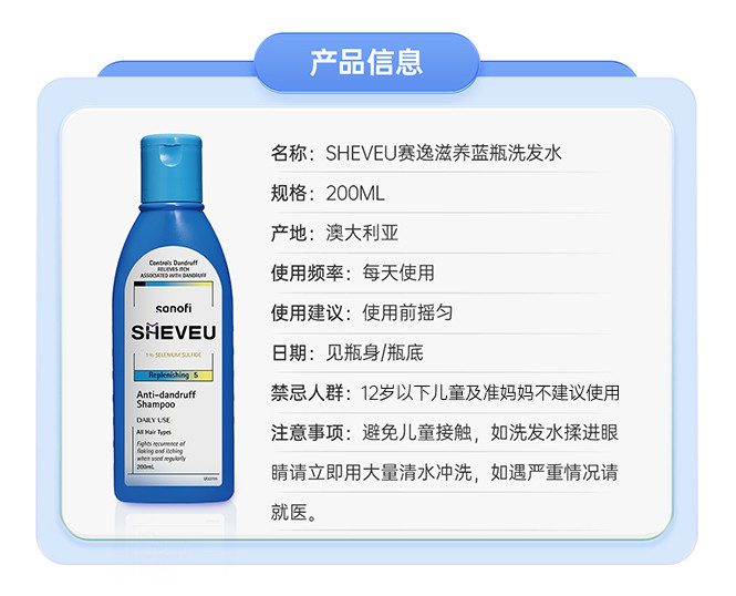 赛逸 二硫化硒滋养去屑止痒修复男女洗发水蓝瓶200ml