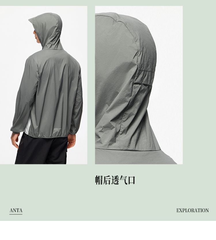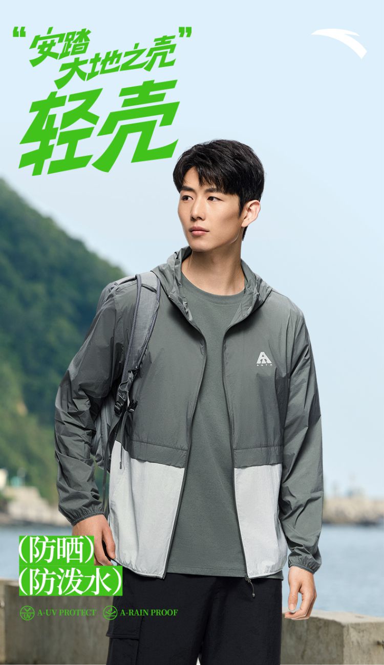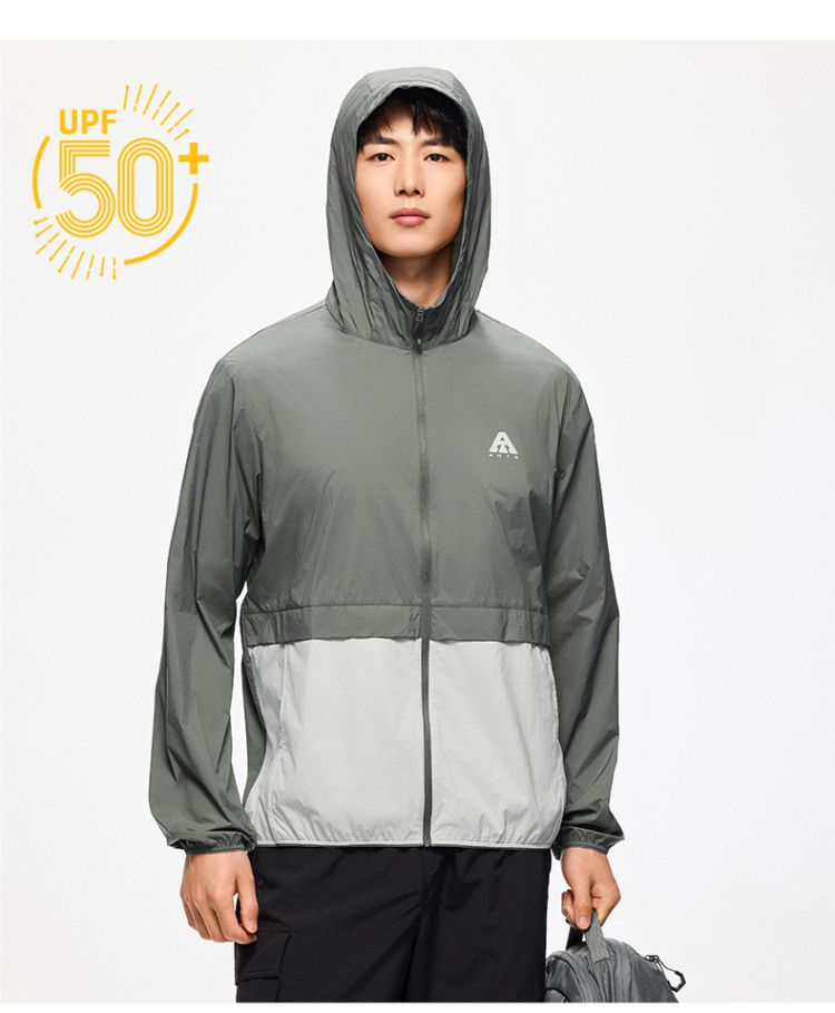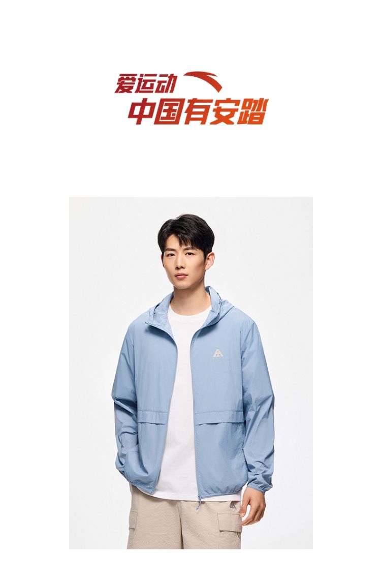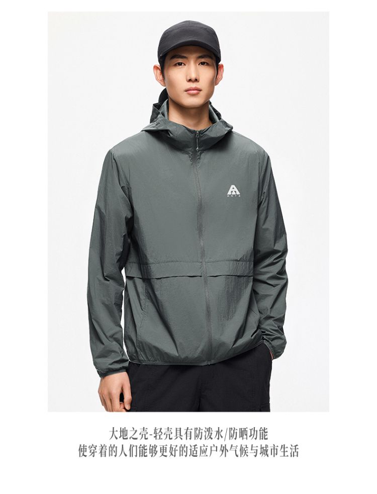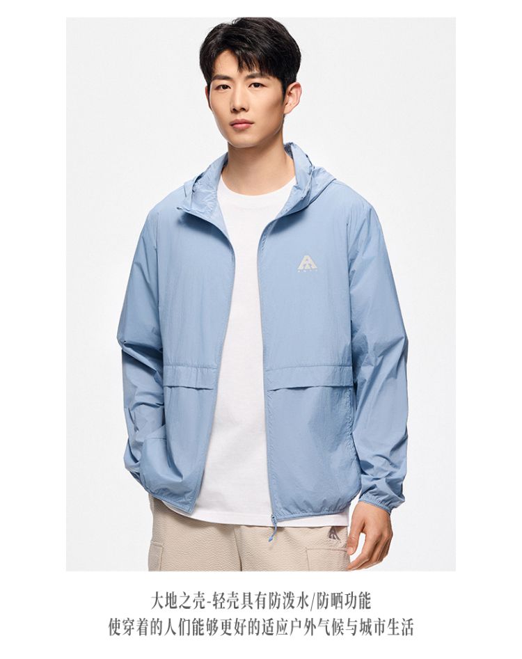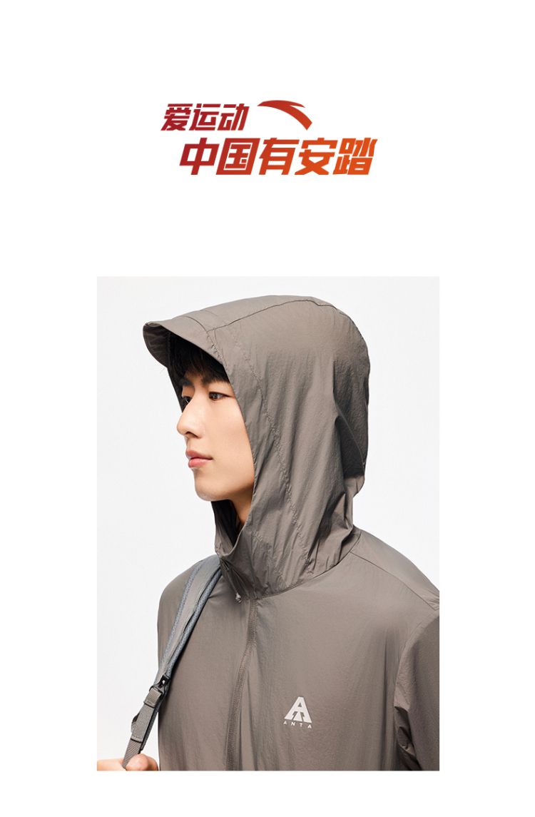 安踏 【轻壳】防晒衣男士防泼水外套男户外抗紫外线梭织连帽运动上衣男