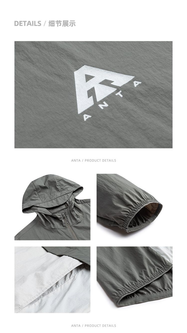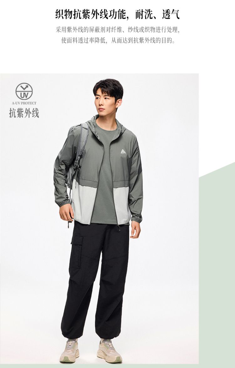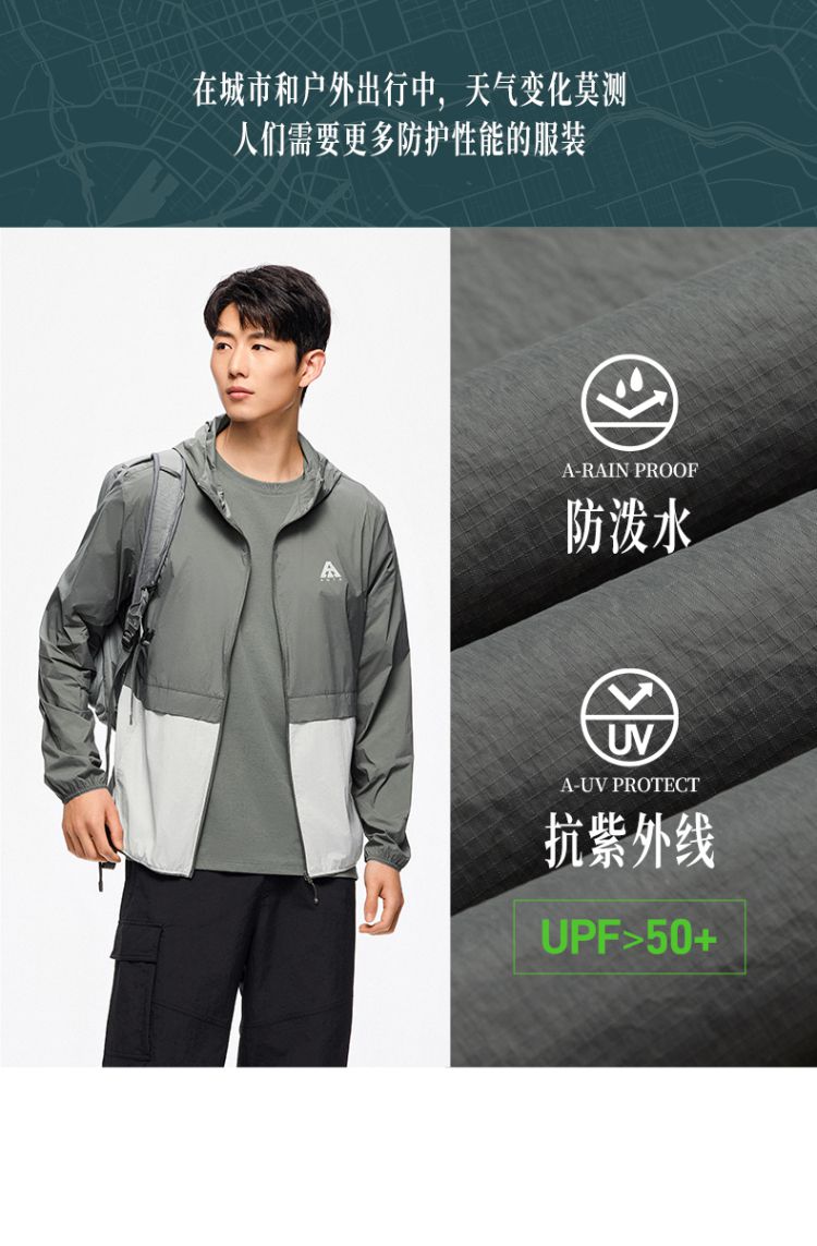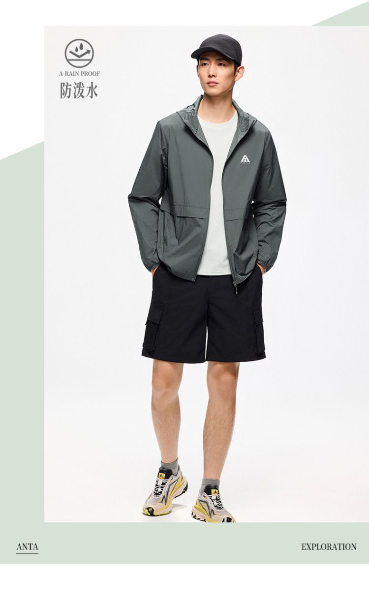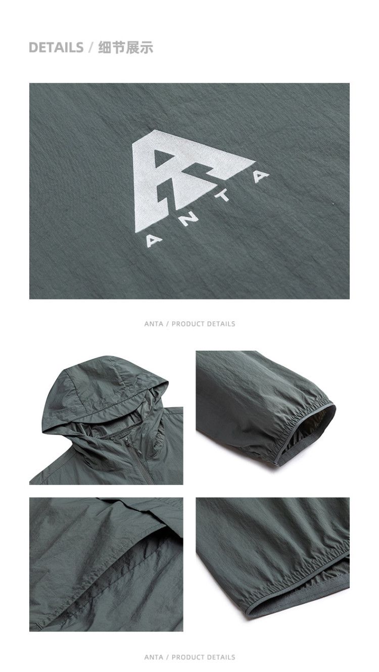 安踏 【轻壳】防晒衣男士防泼水外套男户外抗紫外线梭织连帽运动上衣男
