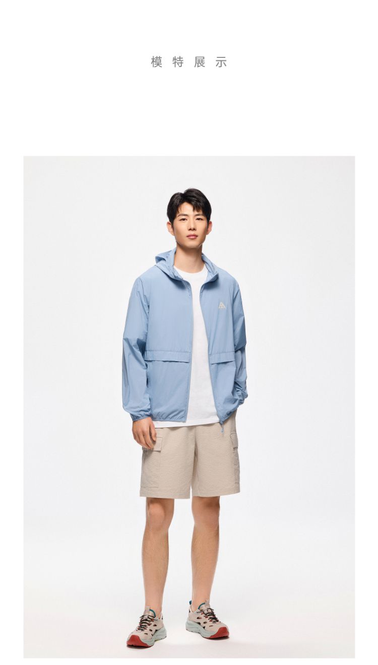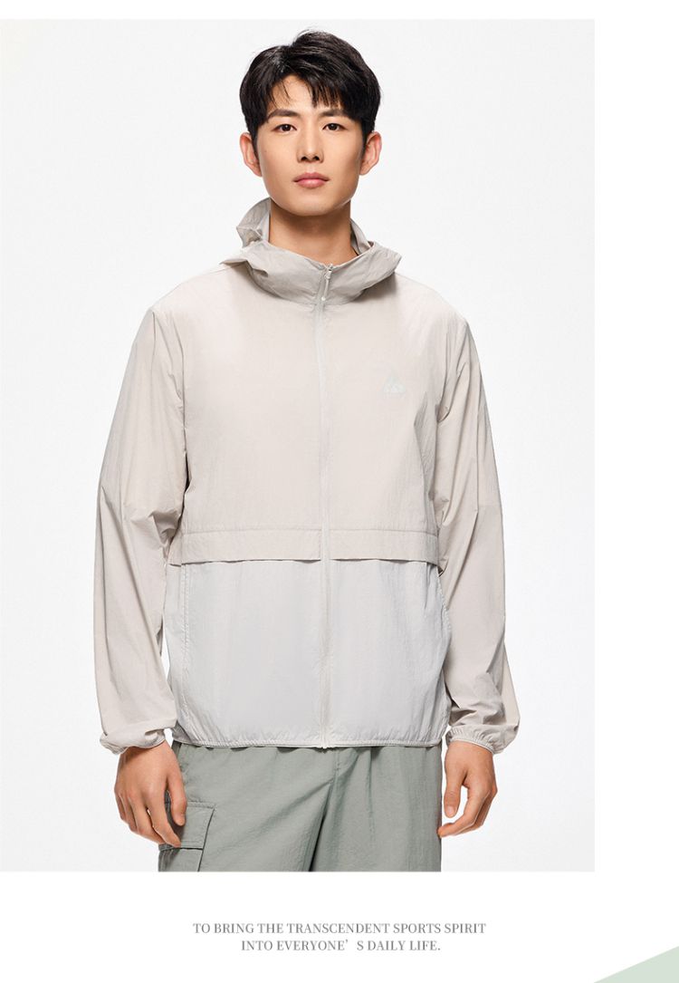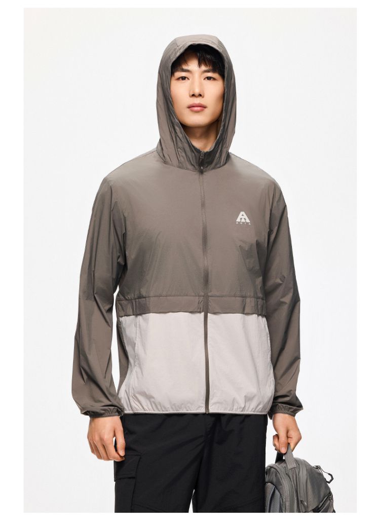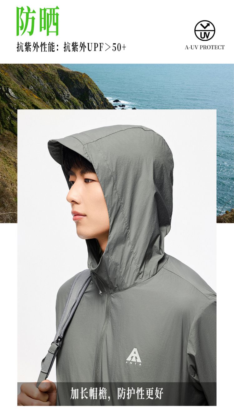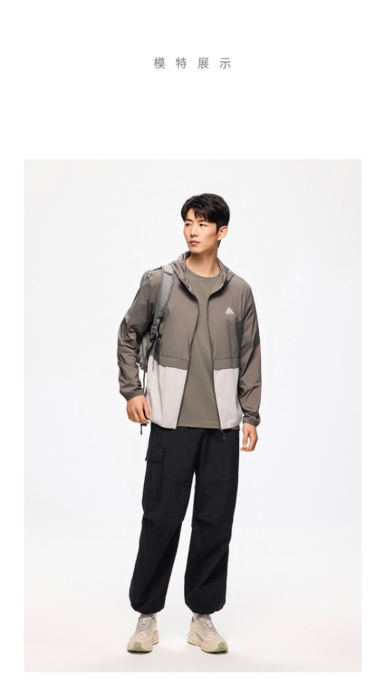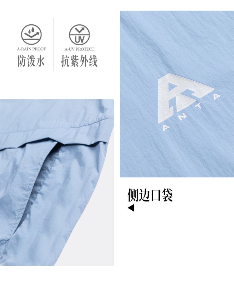 安踏 【轻壳】防晒衣男士防泼水外套男户外抗紫外线梭织连帽运动上衣男