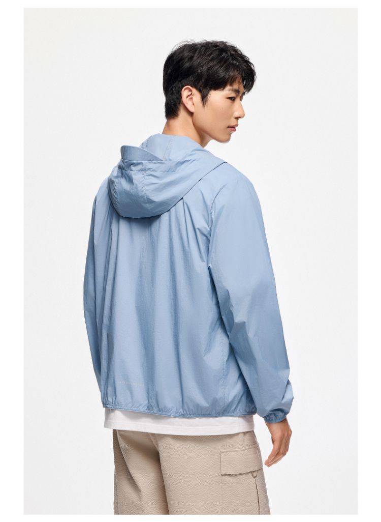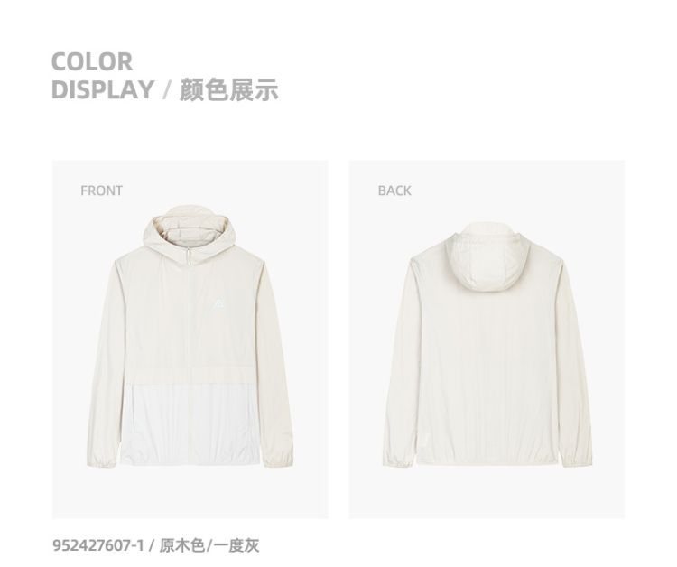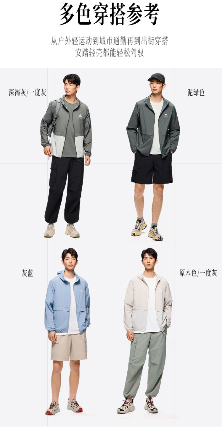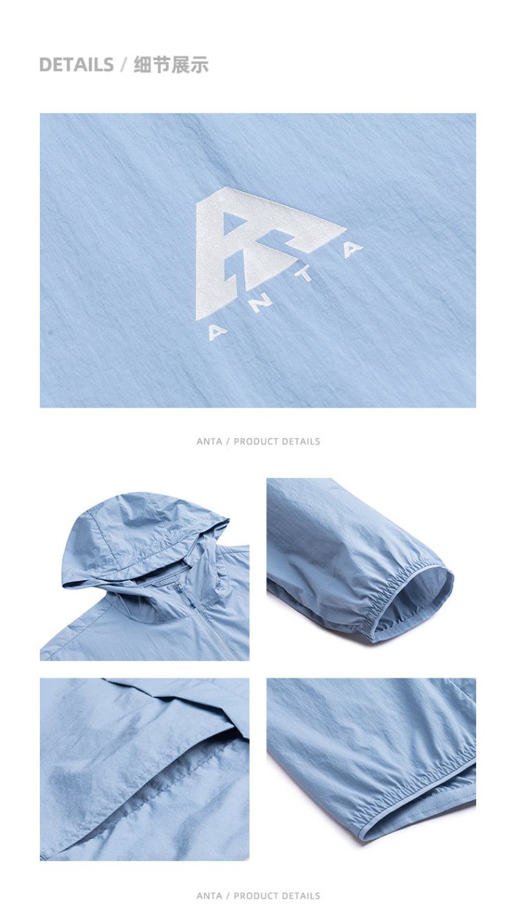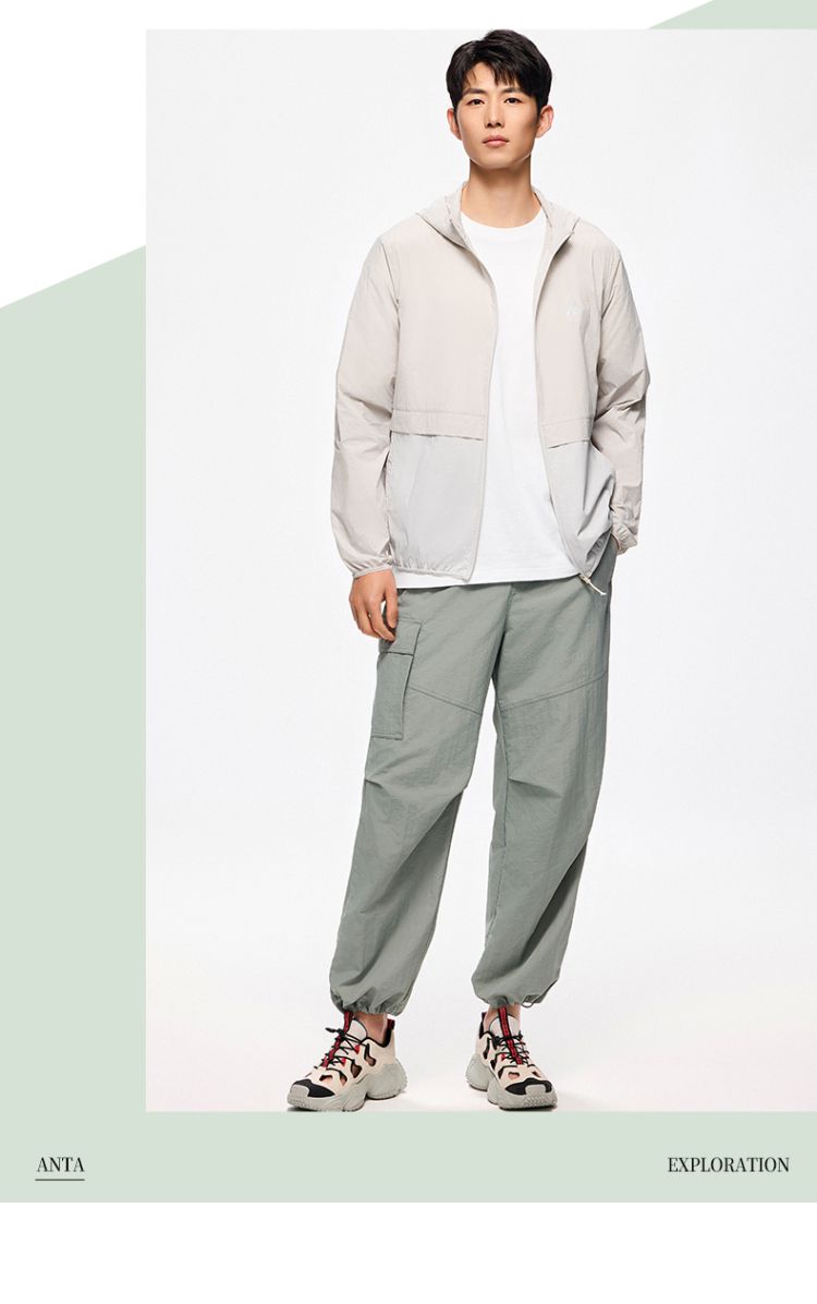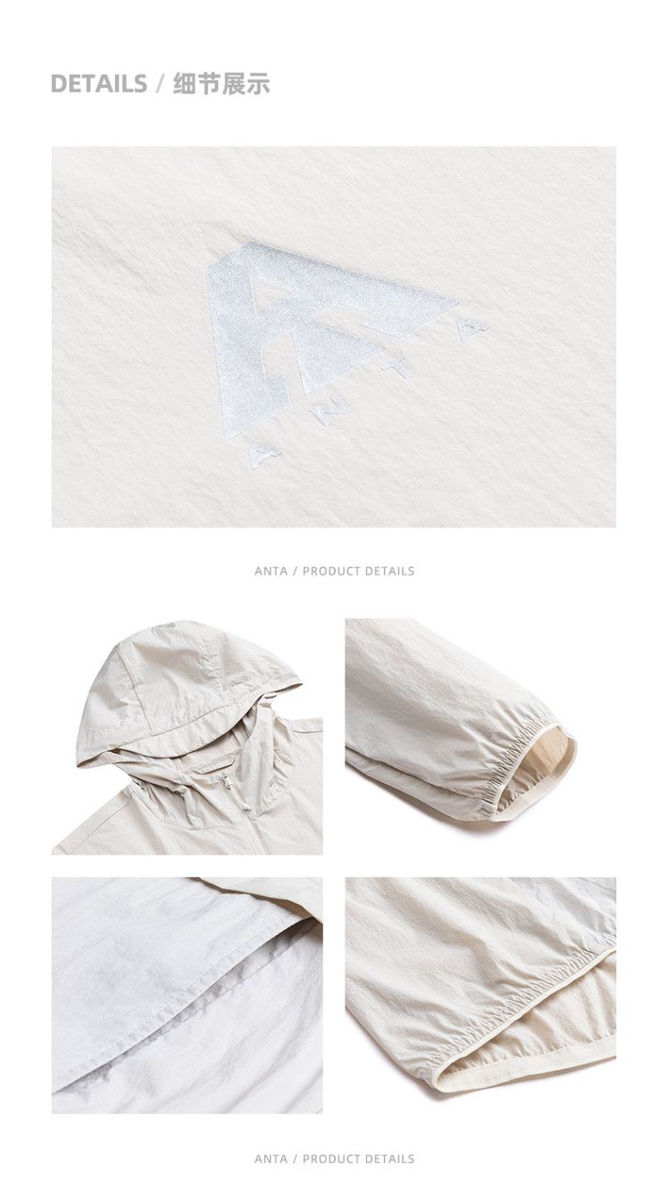 安踏 【轻壳】防晒衣男士防泼水外套男户外抗紫外线梭织连帽运动上衣男