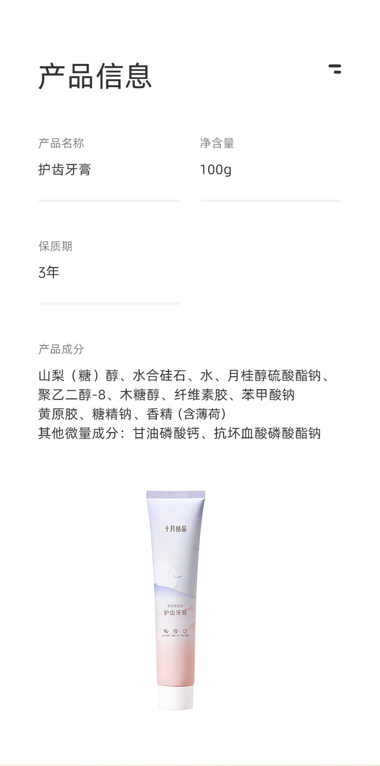 孕期一直在用十月结晶的牌子,买了十月结晶牙膏,洗面奶水乳,待产大礼包,十月结晶新出了小孩擦脸油,现在给大宝也用的十月结晶的擦脸油,老品牌,值得信赖