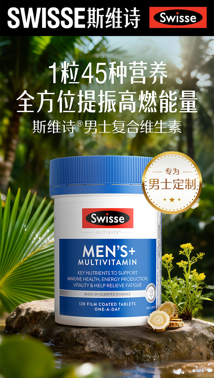 斯维诗 升级加码男士复合维生素120片*2草本矿维养护迸发高然活力