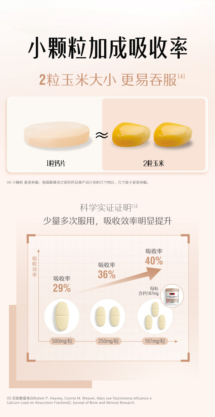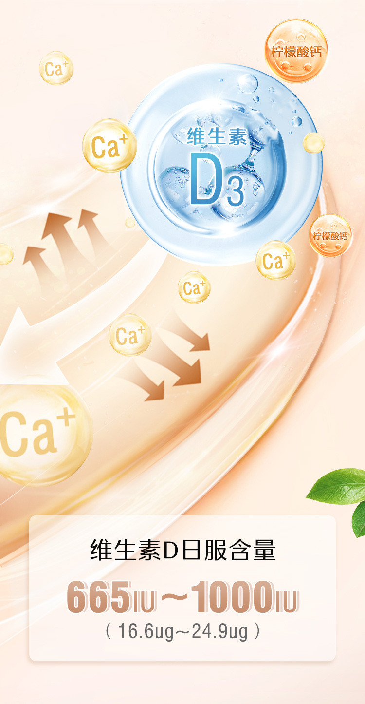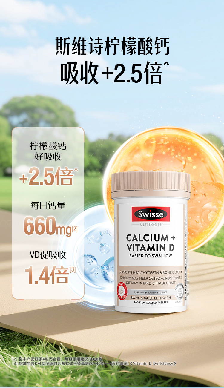 斯维诗 升级柠檬酸钙维生素D+300片*3迷你钙补钙片促吸收少腹担