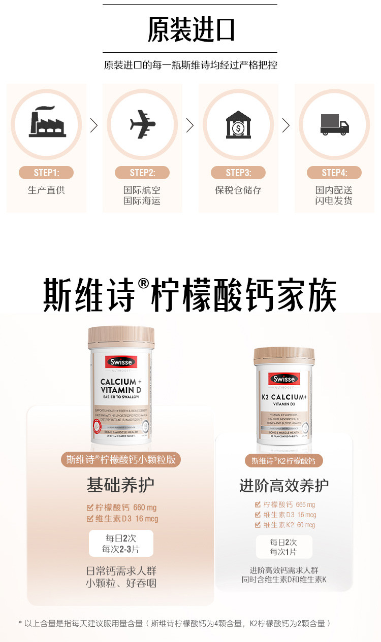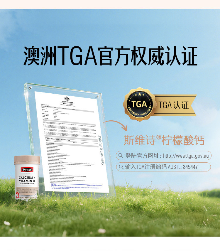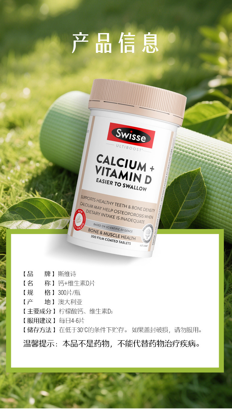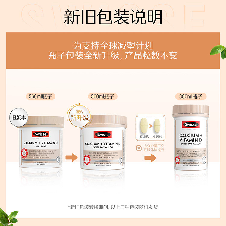 斯维诗 升级柠檬酸钙维生素D+300片*3迷你钙补钙片促吸收少腹担
