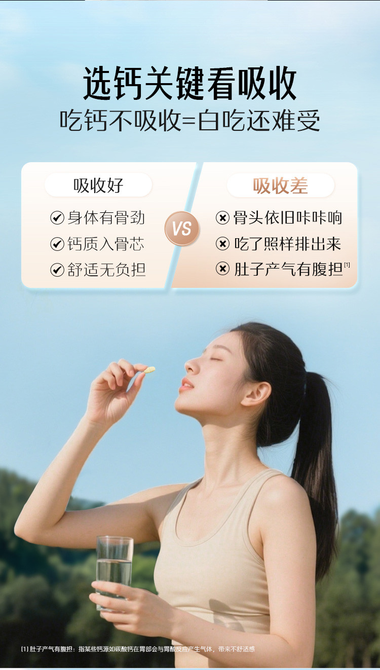 妈妈上了年纪了,特意给妈妈买的,女性中年后钙流失严重,预防性补钙有益于减少老年疾病,妈妈吃了一瓶了,觉得精气神有改善,胳膊疼也有改善