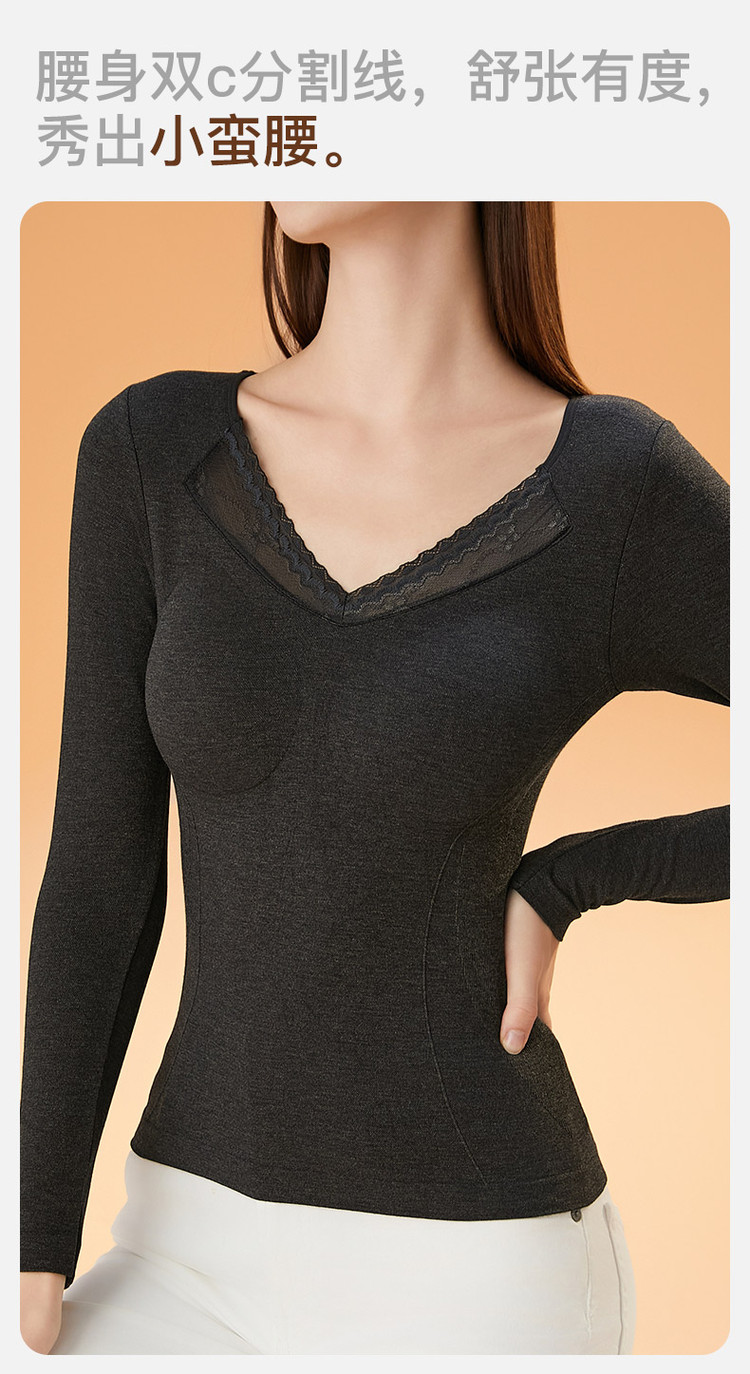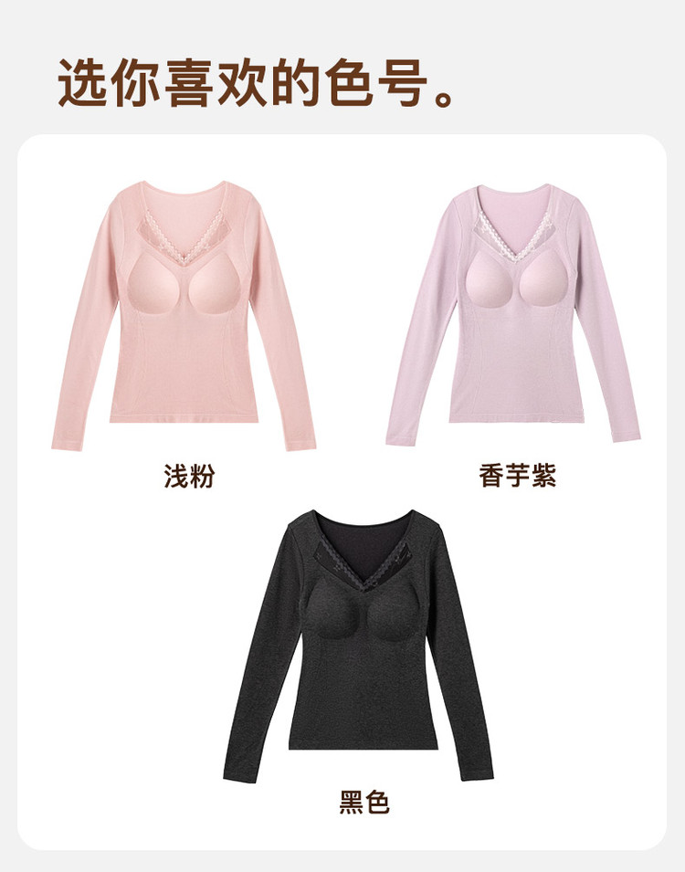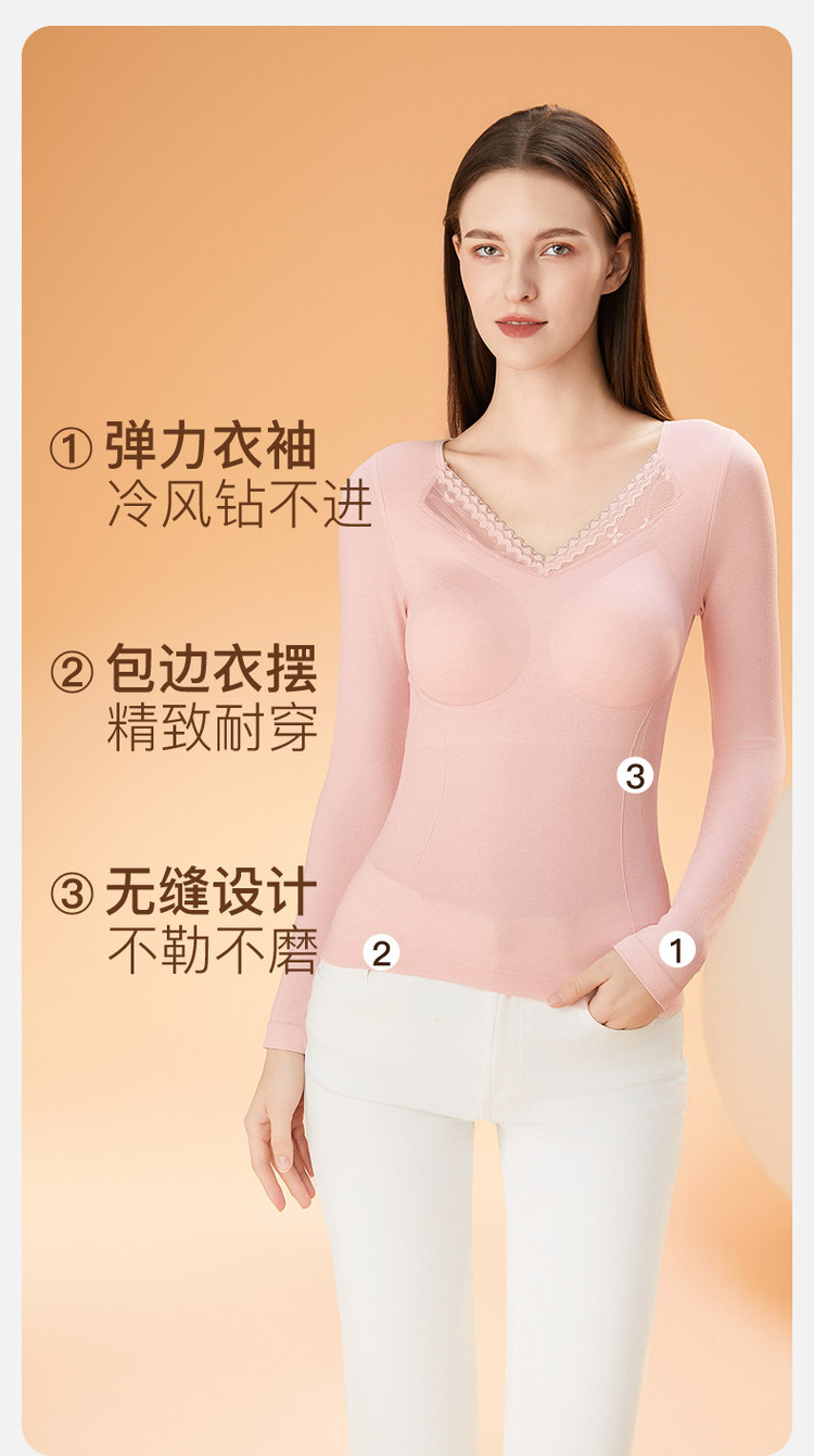 芬腾 【含羊毛 带胸垫】无痕女士秋衣保暖内衣可外穿打底衫单衣