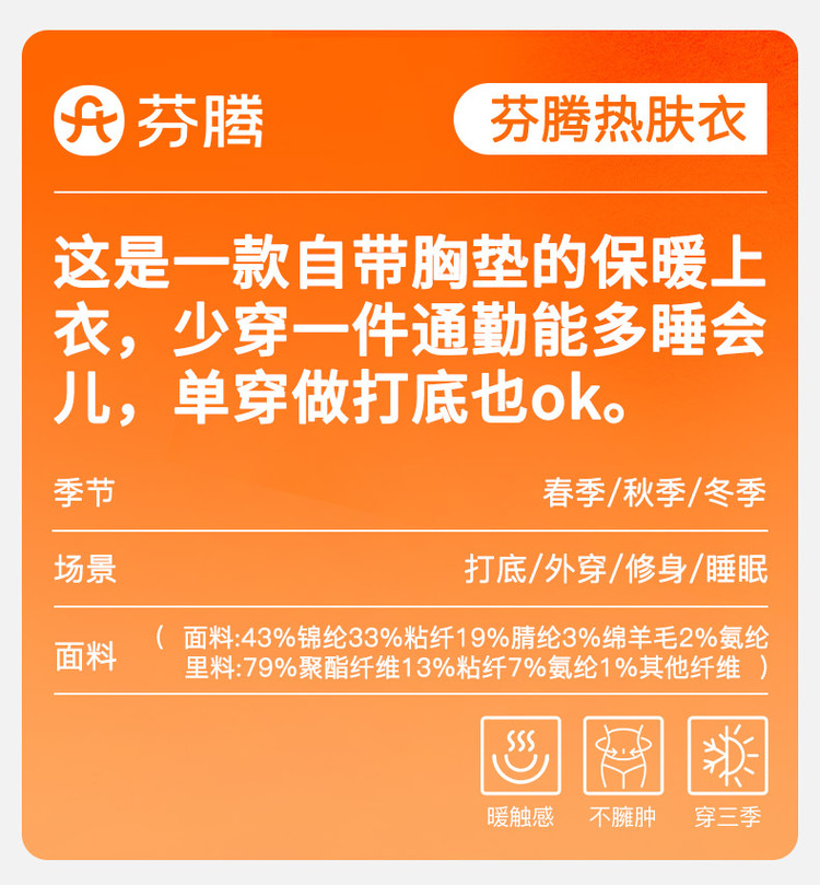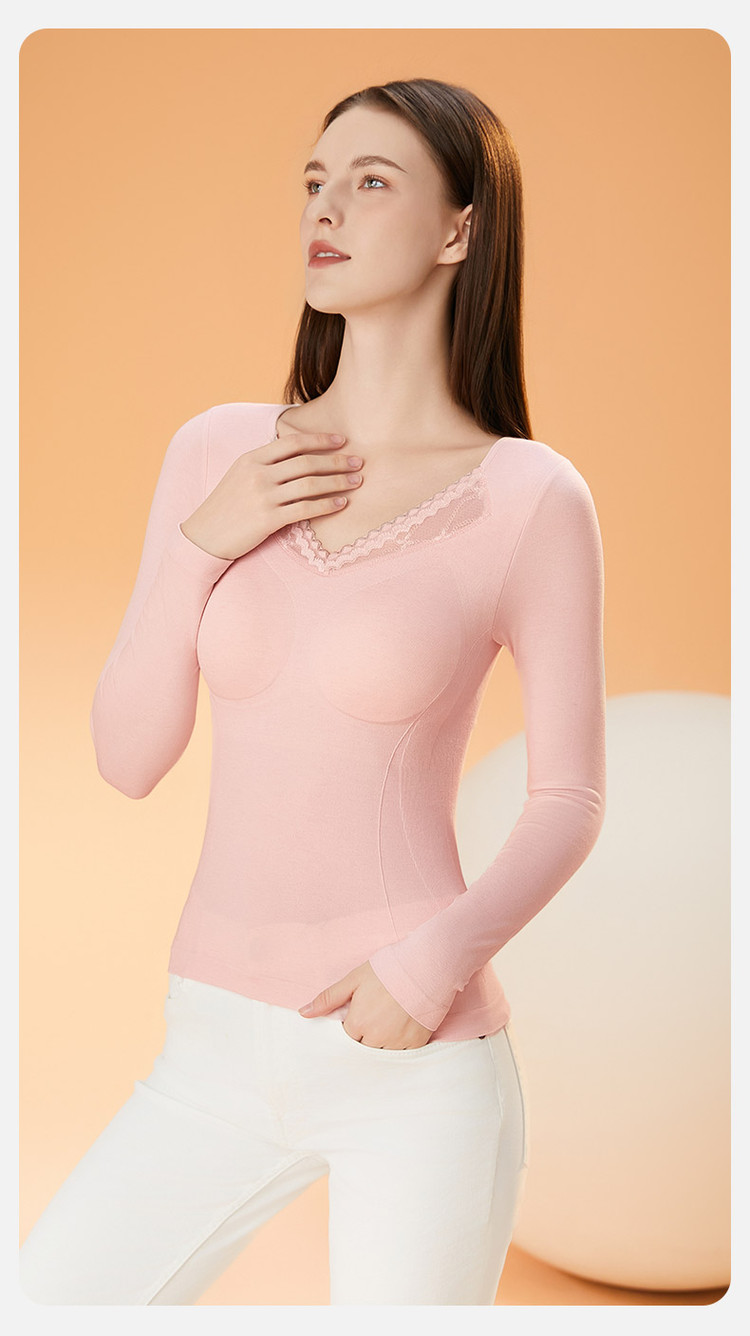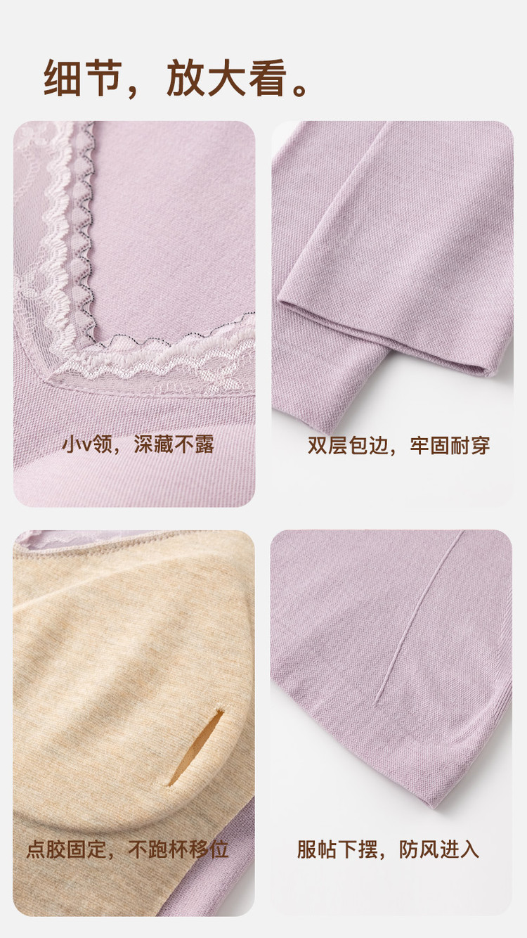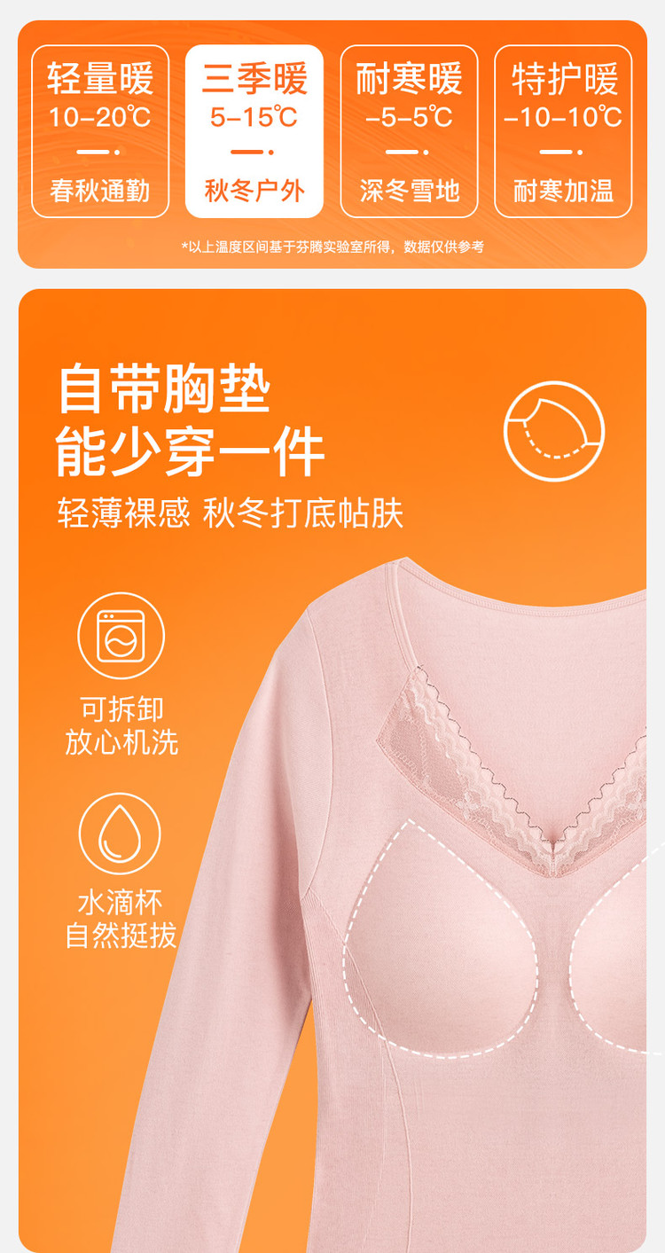 芬腾 【含羊毛 带胸垫】无痕女士秋衣保暖内衣可外穿打底衫单衣