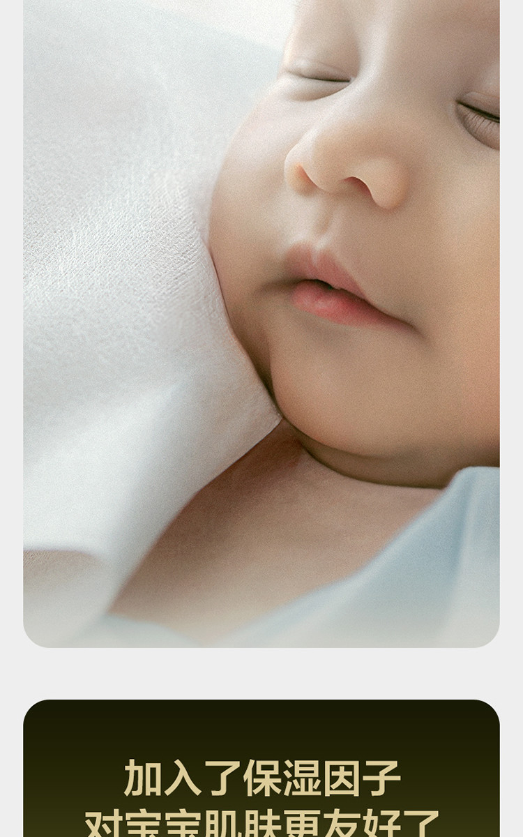 这款婴儿棉柔巾质地柔软,不掉絮,厚实耐用,不易破损,吸水性强,此外,产品添加了山茶成分,带有淡淡的自然清香,适合宝宝使用