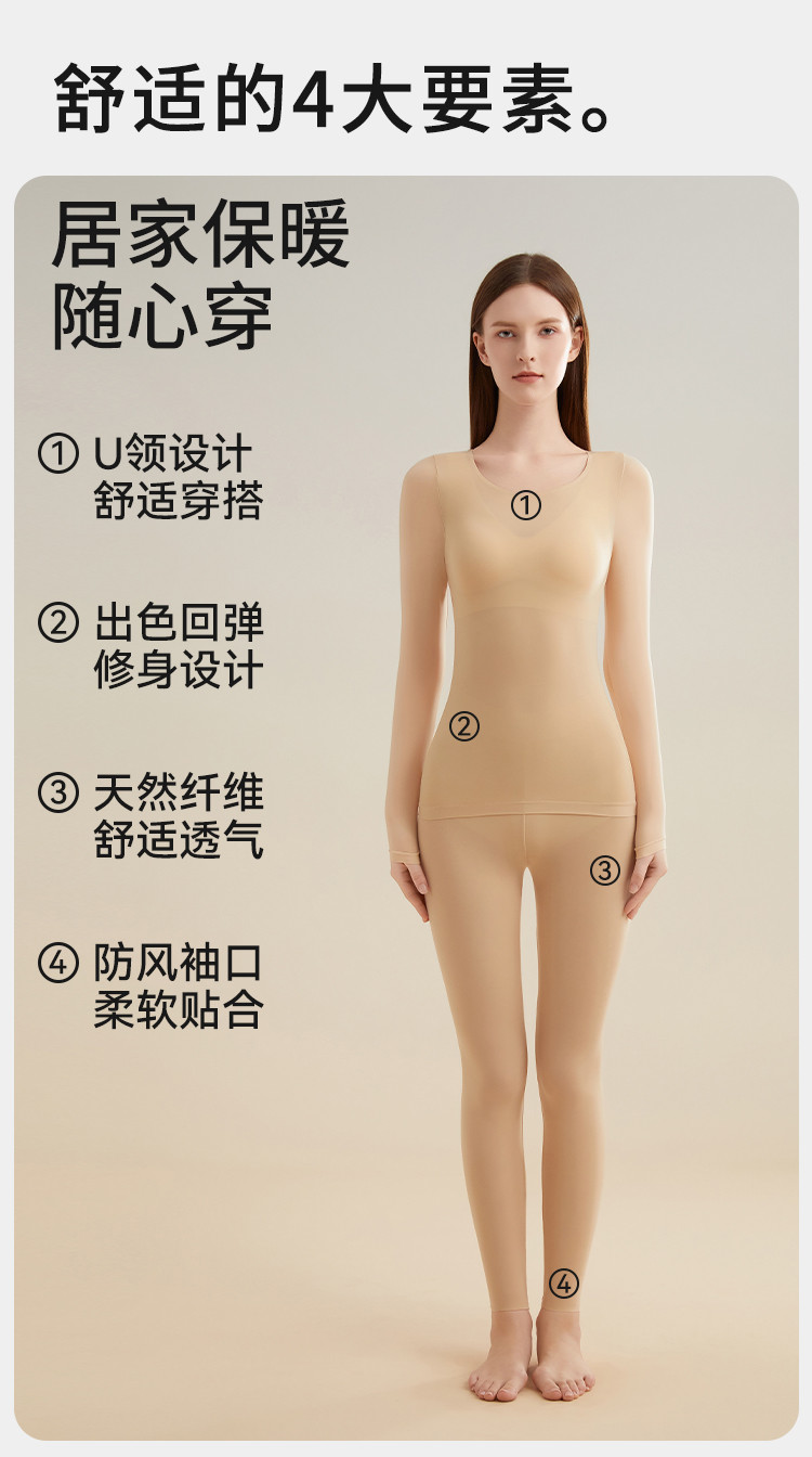 今年是暖冬穿厚一点的秋衣秋裤的会热这款呢,特别适合这个季节穿穿在里面,又不会太热,还很贴身,其他的这种基底一觉得穿在身上有凉感,但是这款觉得很舒适,所以接着入手了几套 会继续回购