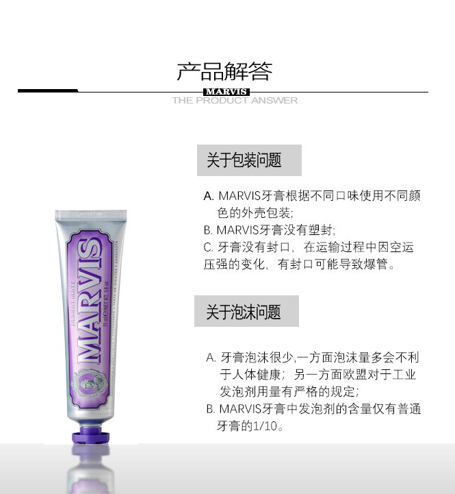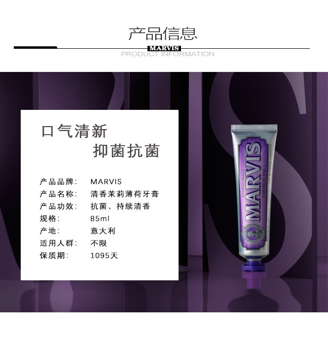 MARVIS 玛尔仕意大利进口盛夏茉莉薄荷牙膏85ml清新口气
