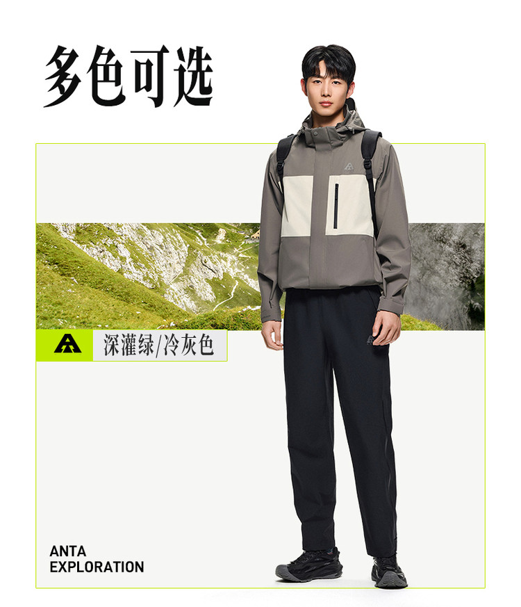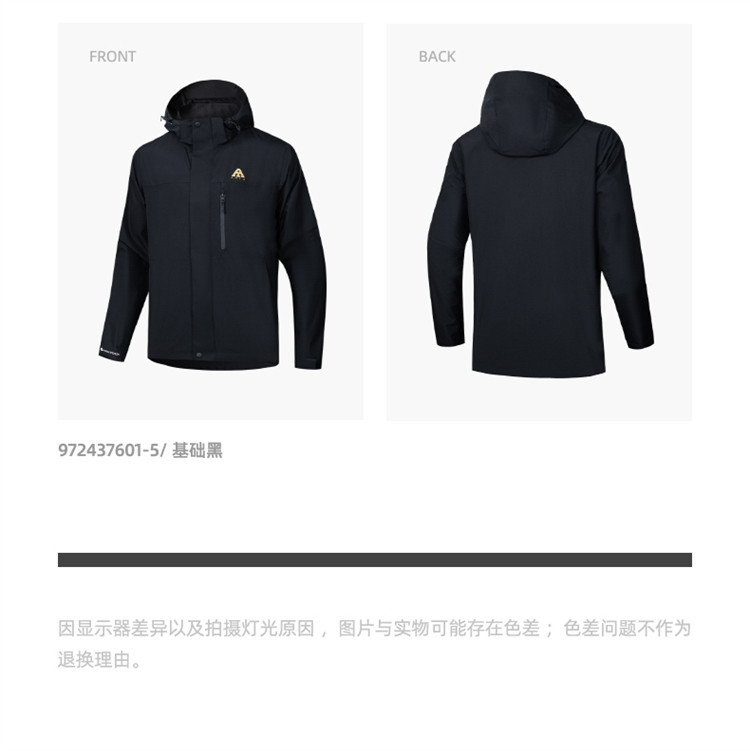 国货之光大品牌安踏,设计时尚大气,做工精细,不同颜色都好看,跟图片一样无色差,版型很好,按自己平常码下单就可以,这款冲锋衣适合长时间户外活动,能适合各种天气,面料质量很好,耐磨抗糟,一款很好的户外冲锋衣,推荐,值得拥有!
