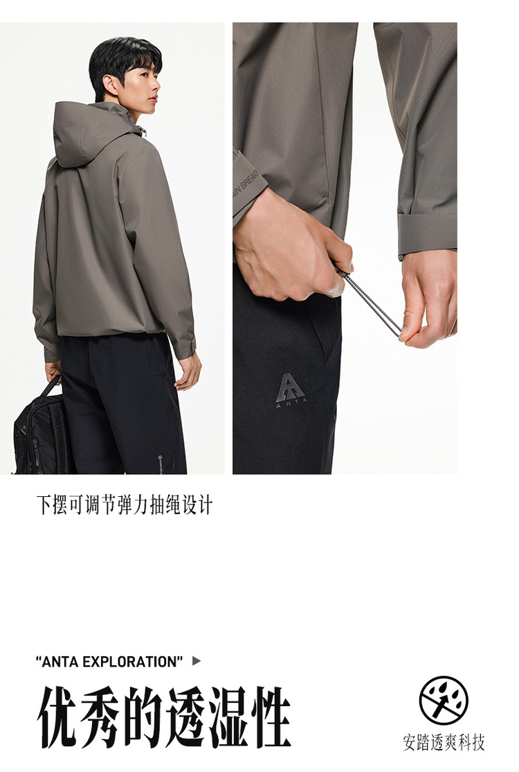 安踏 水壳冲锋衣丨男防风雨透气耐磨单层冲锋衣运动户外男士外套上衣
