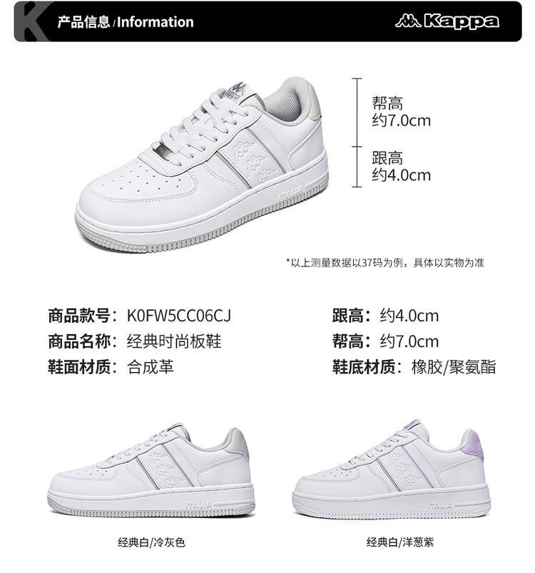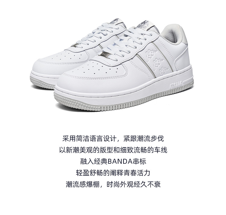 Kappa 女士百搭时尚潮流板鞋秋冬情侣休闲小白鞋厚底增高复古运动鞋子男