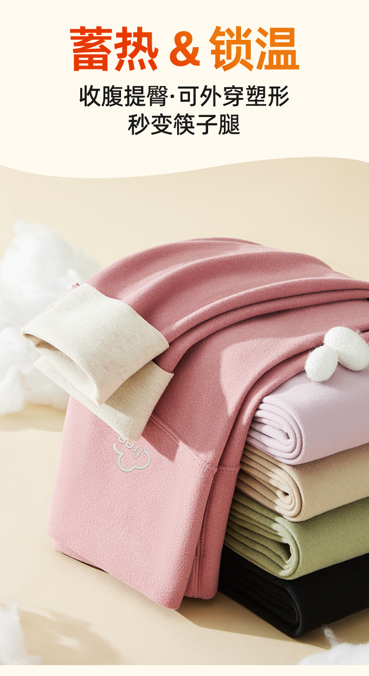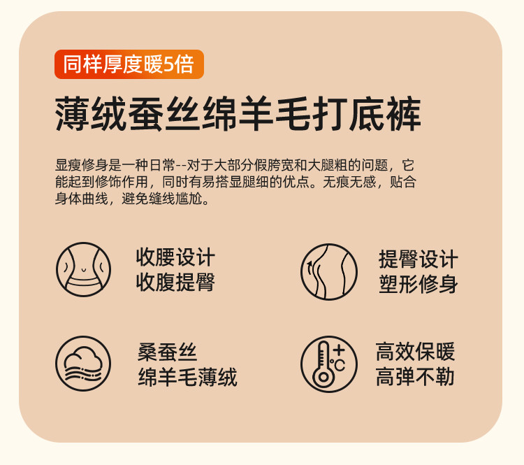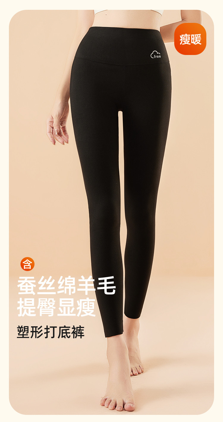 都市丽人 【含羊毛+蚕丝】高腰收腹蓄热女士秋冬打底裤加绒保暖内衣单裤女
