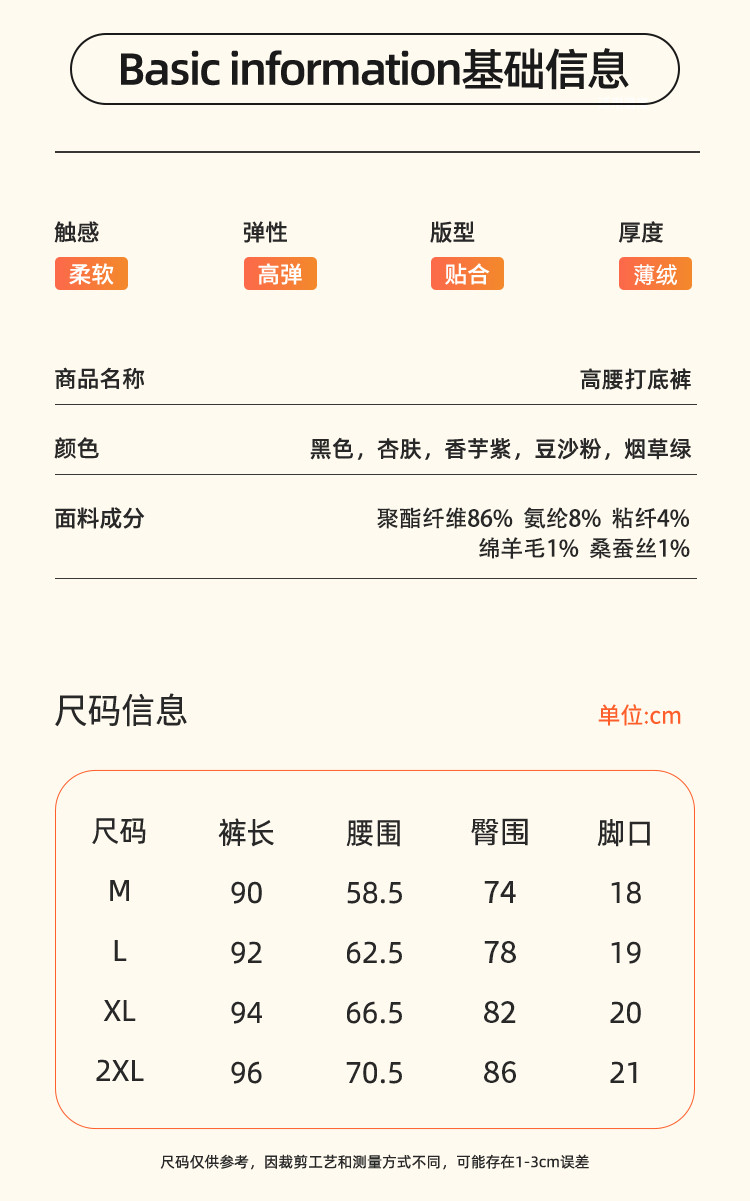 面料材质:柔软舒服 产品性价比:高,打底裤很亲肤,穿着舒服,特意拍大2码,乖乖刚刚好,就是这个高腰的有点不大习惯,总体吧还是很满意了