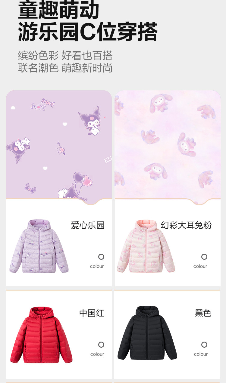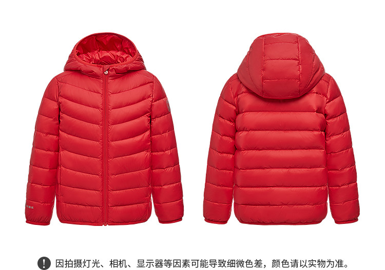 波司登 疯狂动物城合作轻薄羽男女童舒适亲肤连帽轻暖儿童羽绒服圣诞红色