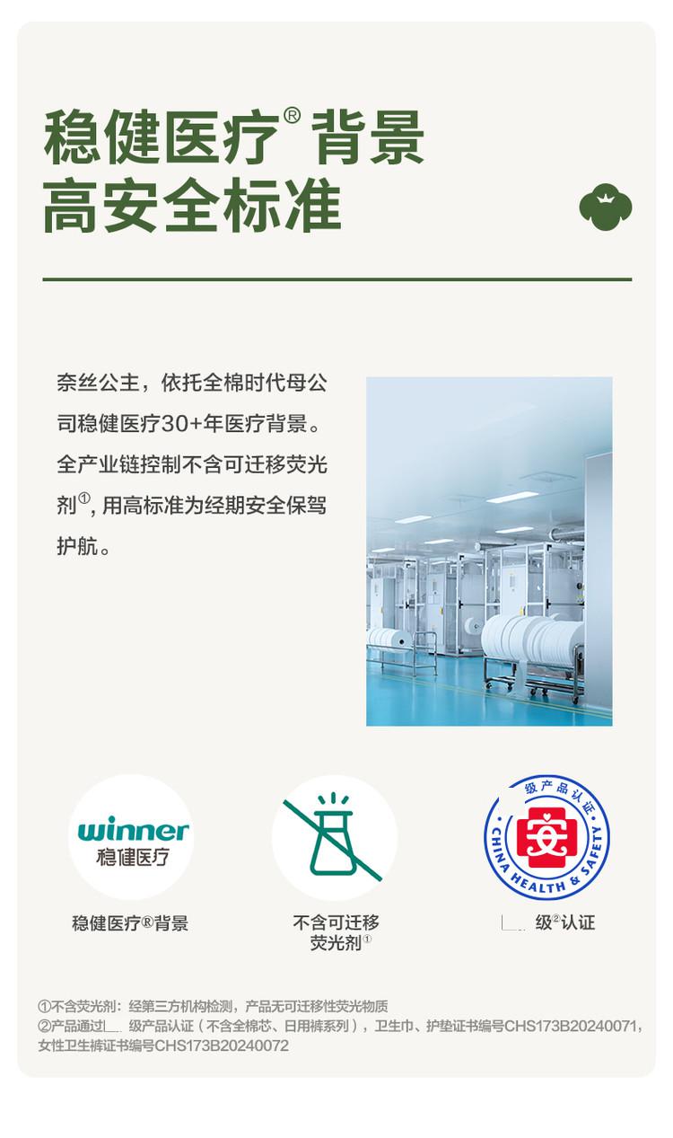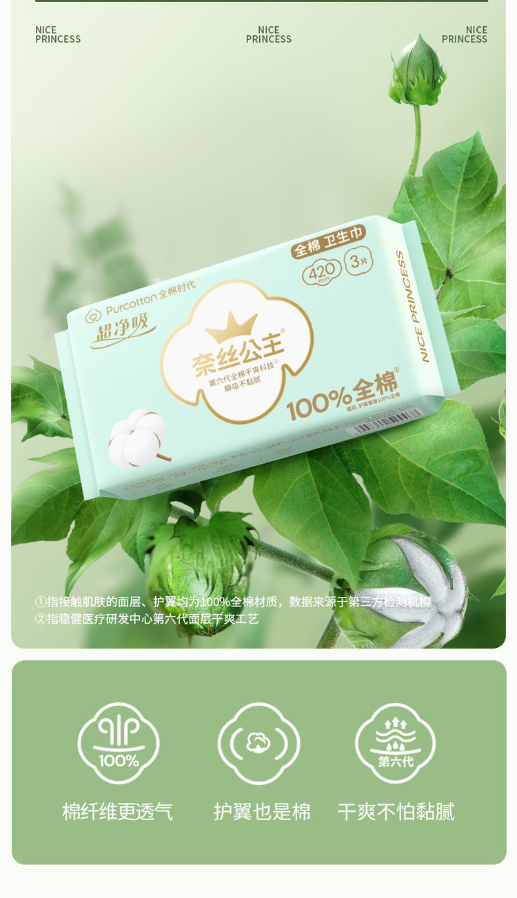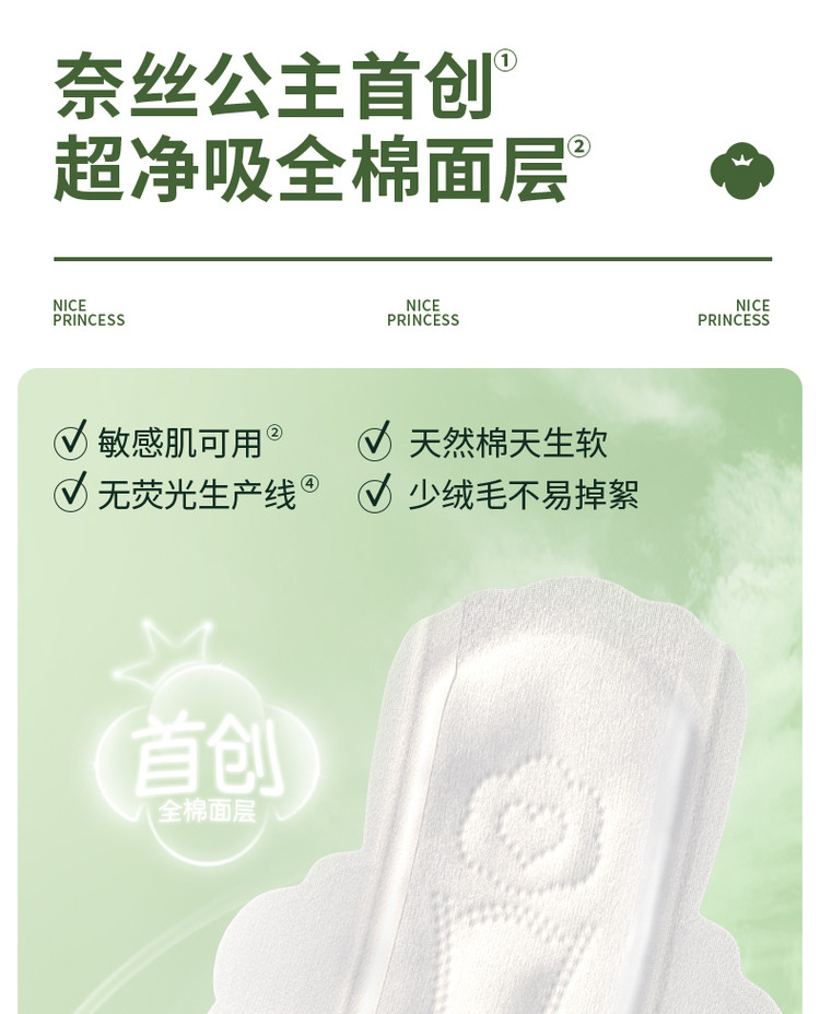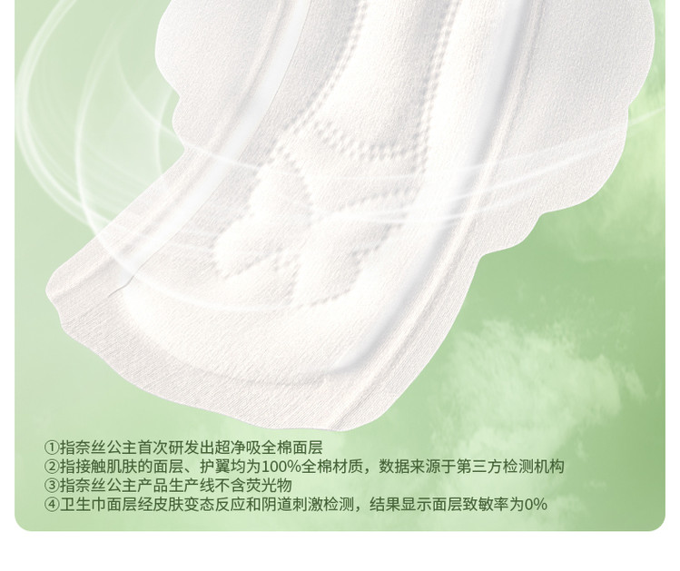 整体评价:全棉时代奈丝公主日夜组合太贴心了!100%全棉面层+护翼,医护级消毒,超薄透气不闷痘。瞬吸干爽防侧漏,日夜用+护垫+安睡裤配齐,敏感肌安心用,性价比超高!
