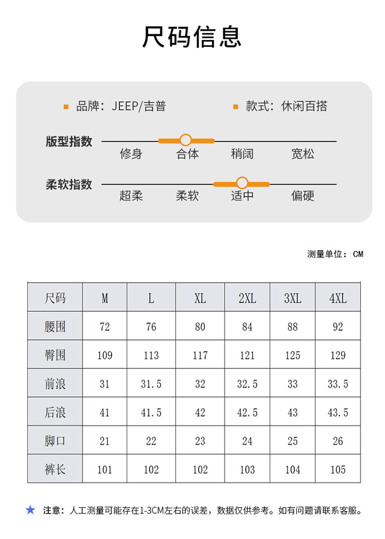 JEEP 【垂感直筒裤】休闲裤男士裤子男春季宽松卫裤运动裤垂感阔腿男裤