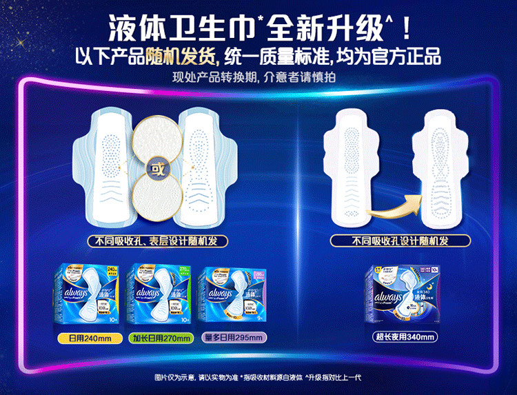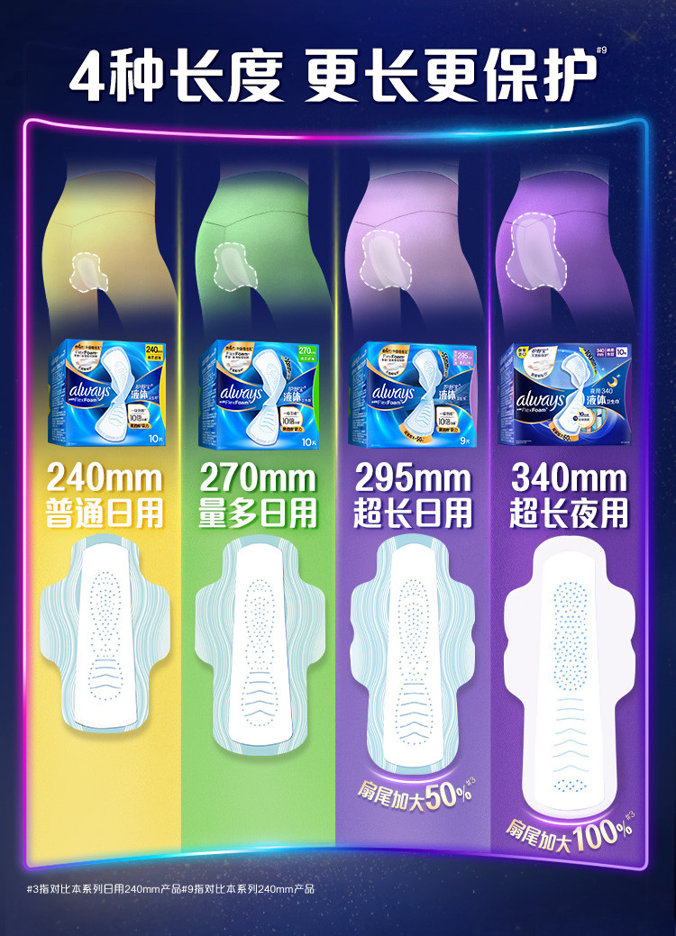 第4代升级款真的太绝了,超薄的一片,贴在身上完全无感,像没垫一样,上班久坐、出门逛街、运动都毫无负担,再也没有闷汗、黏腻的尴尬。黑科技液体吸收芯,吸收力直接拉满,能吸收10倍自重的量,一吸到底,量大的日子也能牢牢锁住,不反渗、不侧漏,睡前用270mm款,一觉睡到天亮都安心。