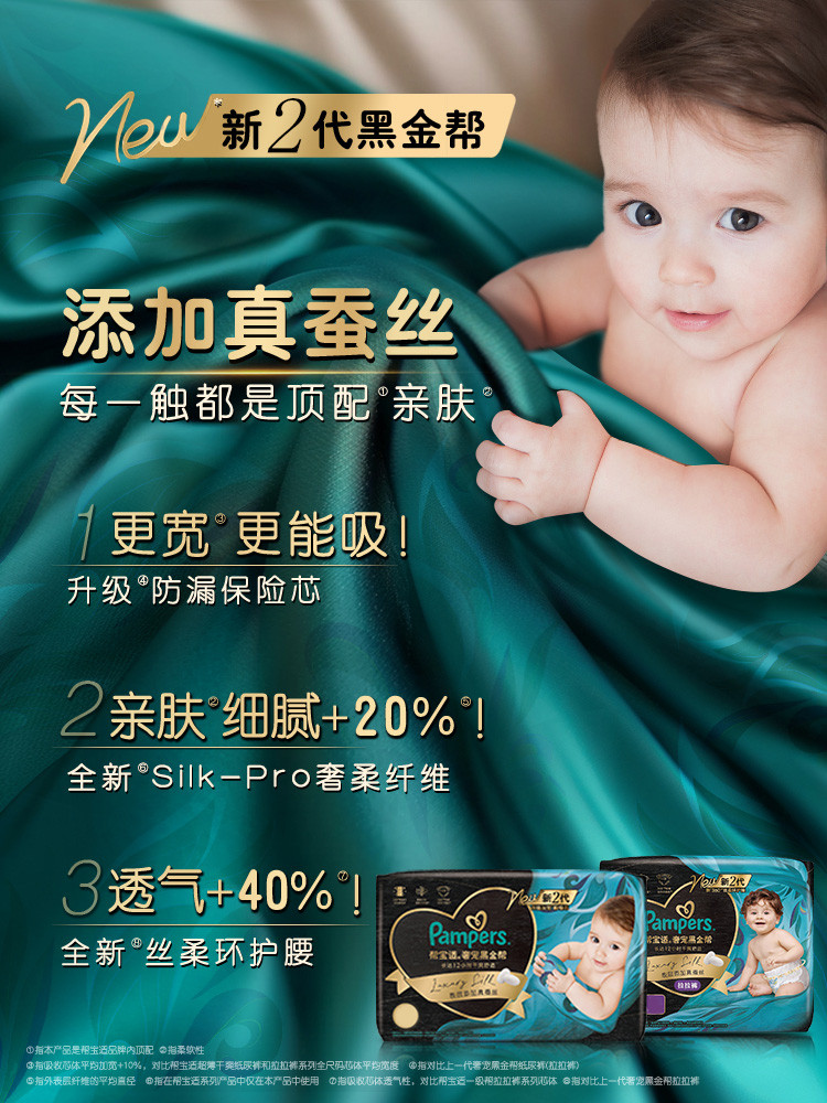 帮宝适 【超值2包】黑金帮拉拉裤L-4XL尿片新生儿超薄透气尿不湿