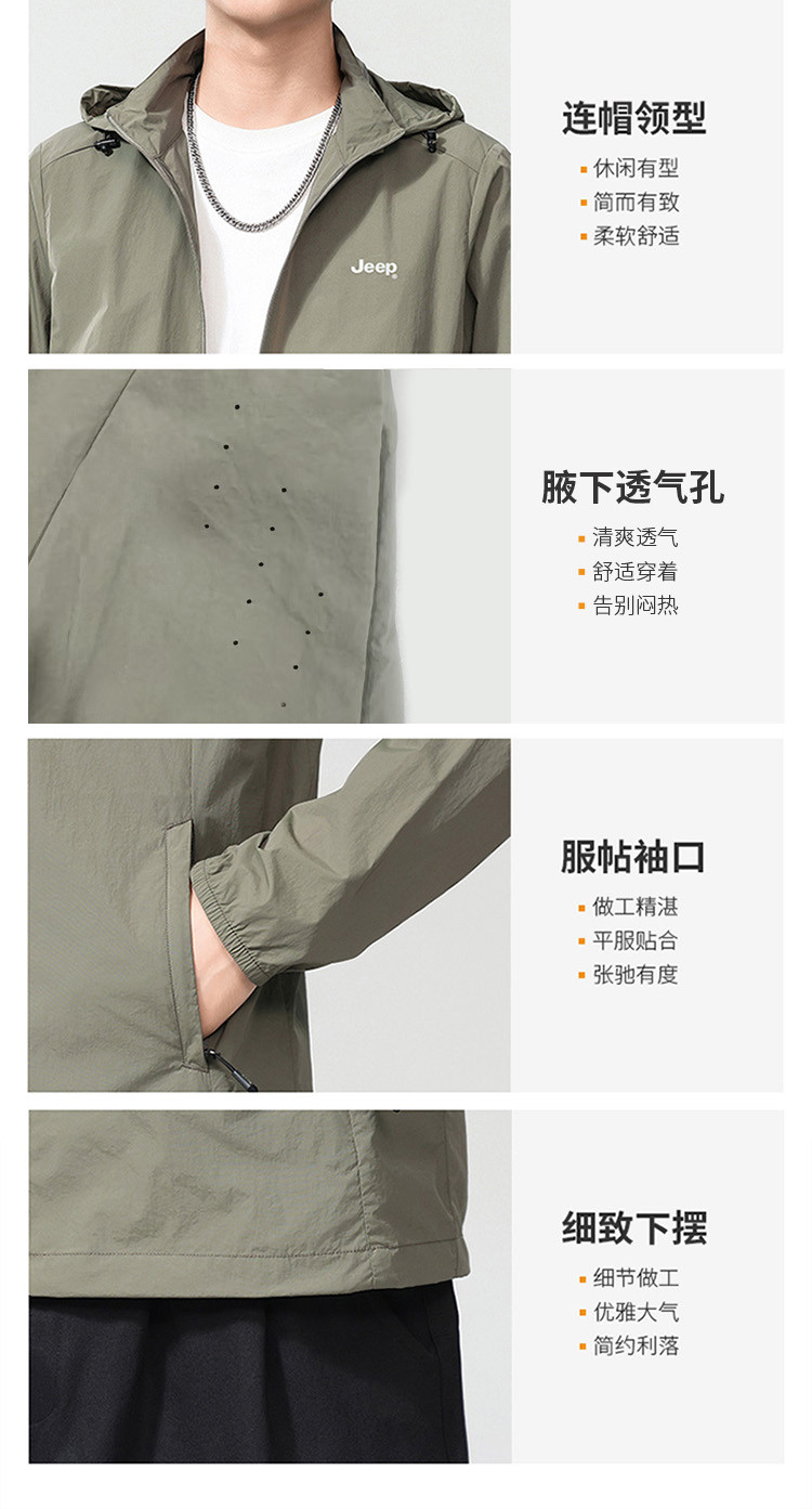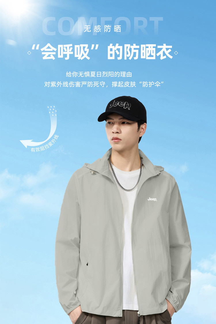 JEEP 防晒衣男士夏季2025防紫外线外套冰丝透气薄款钓鱼防晒服