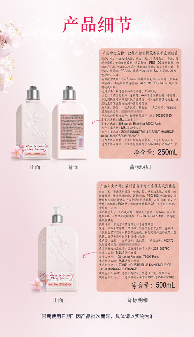 L'OCCITANE 欧舒丹【圣诞送礼】甜蜜樱花身体乳沐浴露套装秋冬滋润保湿留香