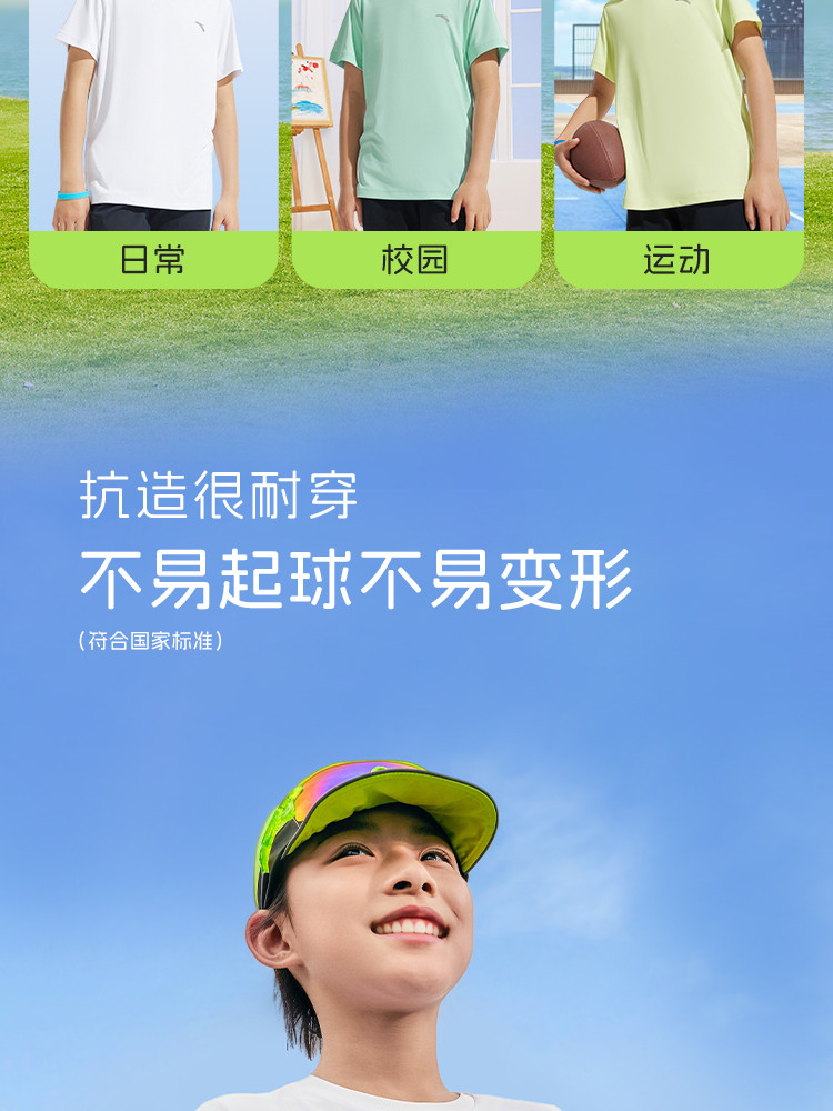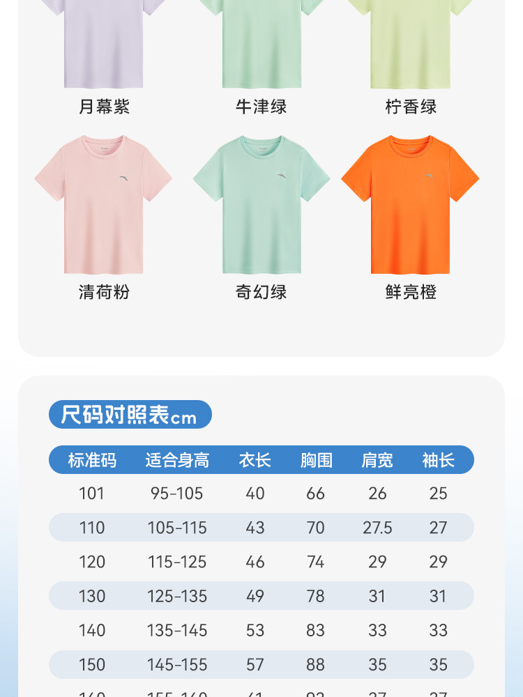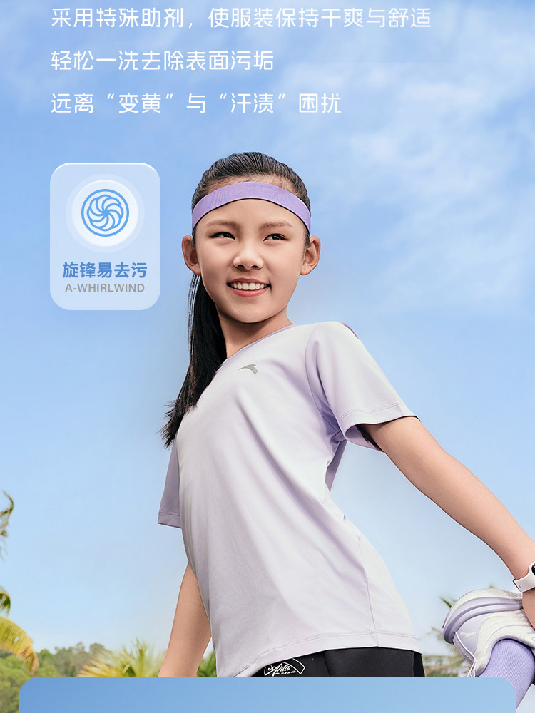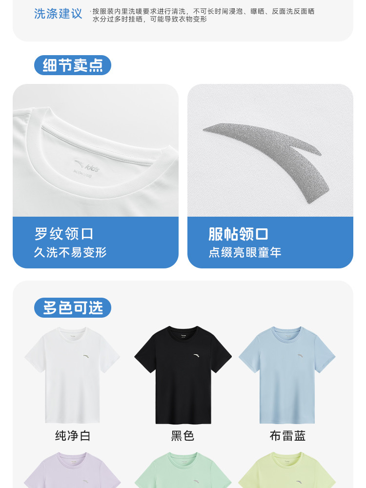 安踏 速干T易去污儿童t恤短袖薄款男童短袖女童运动休闲T恤安踏童装