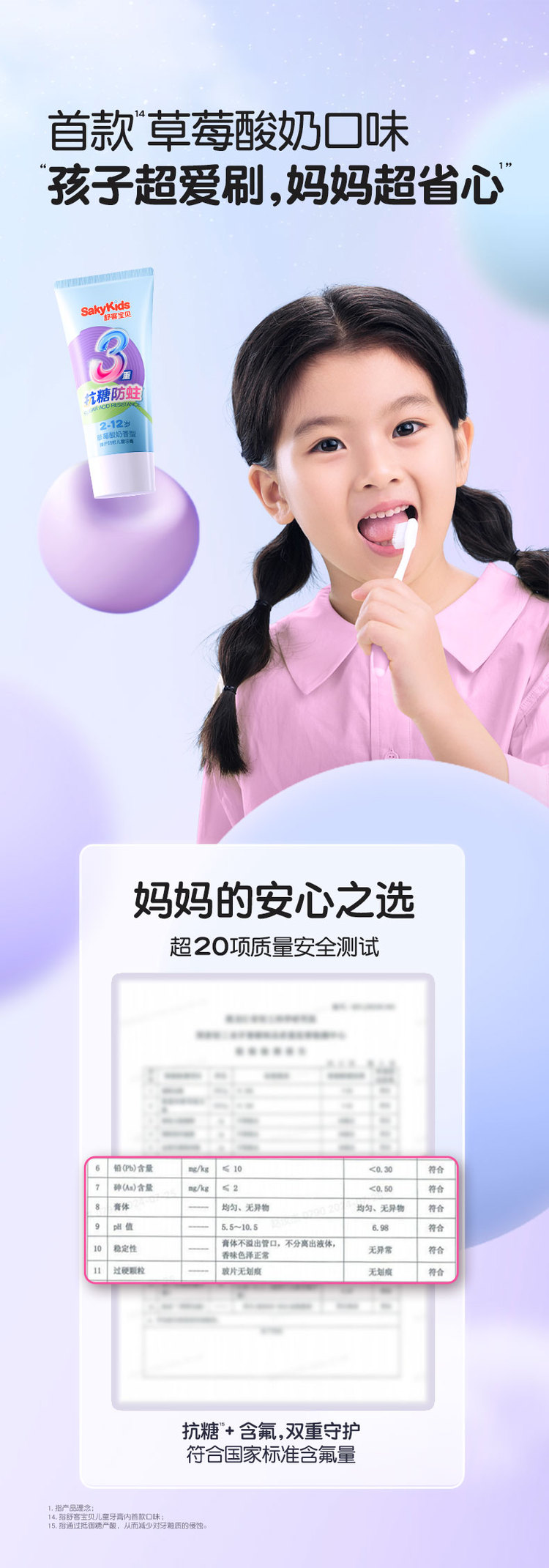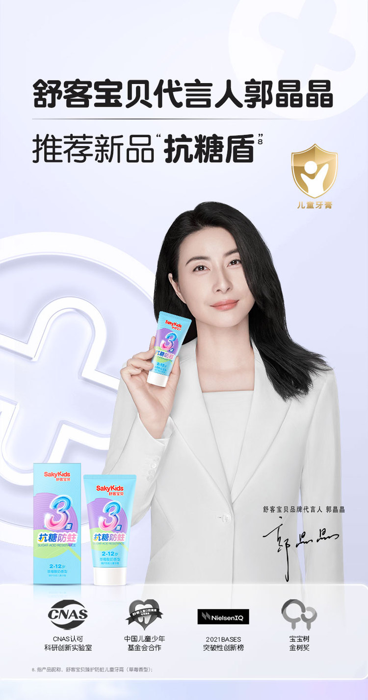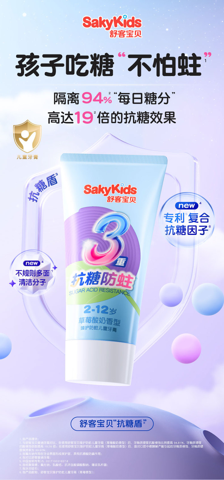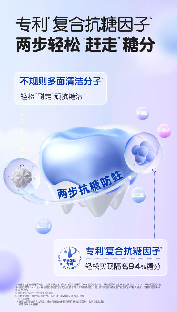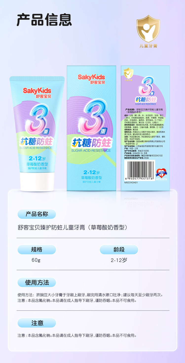 舒客 【郭晶晶同款】儿童牙膏抗糖防蛀2到6到12岁含氟防蛀儿童修护